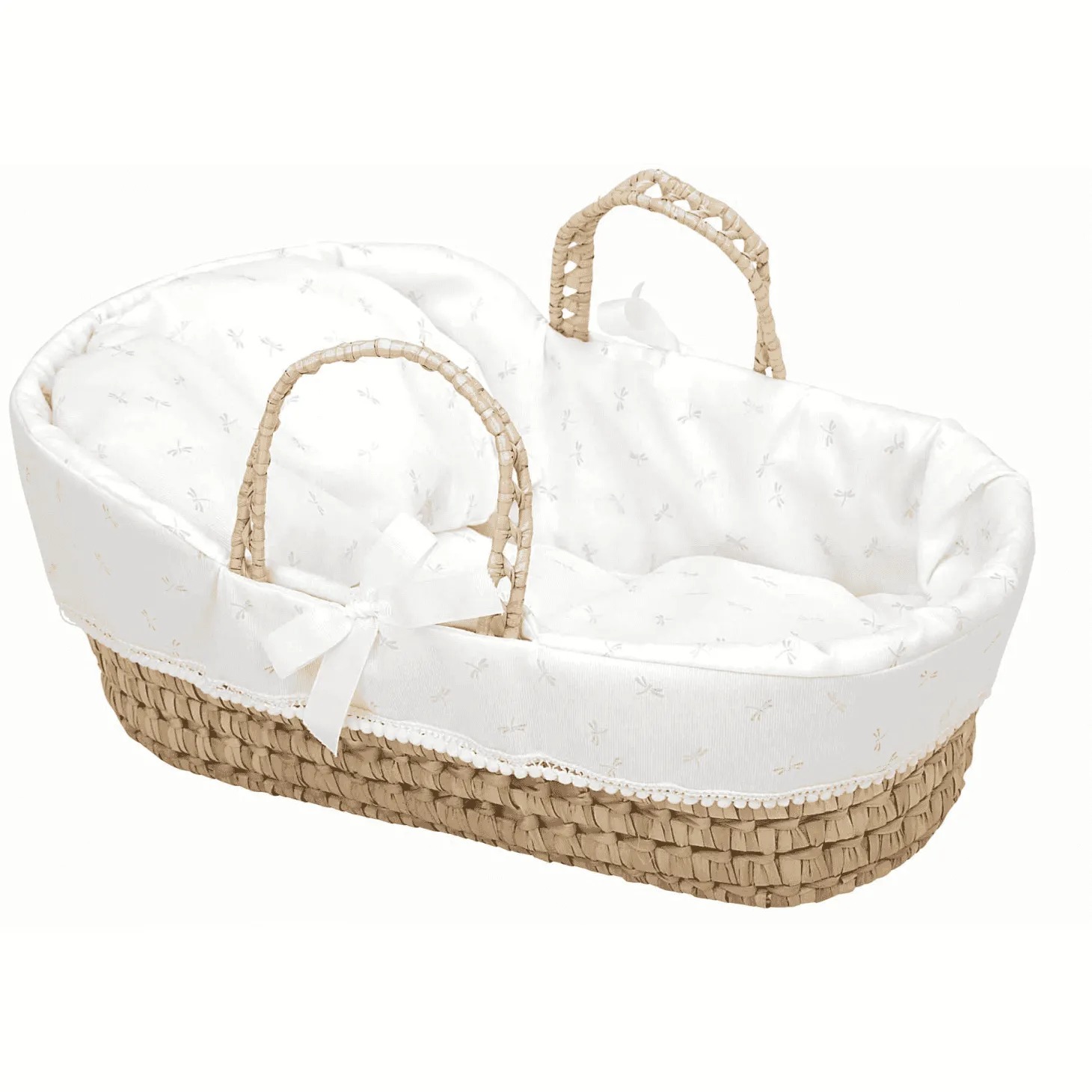 Canastilla de mimbre con 2 asas, cubremanta y cojín
