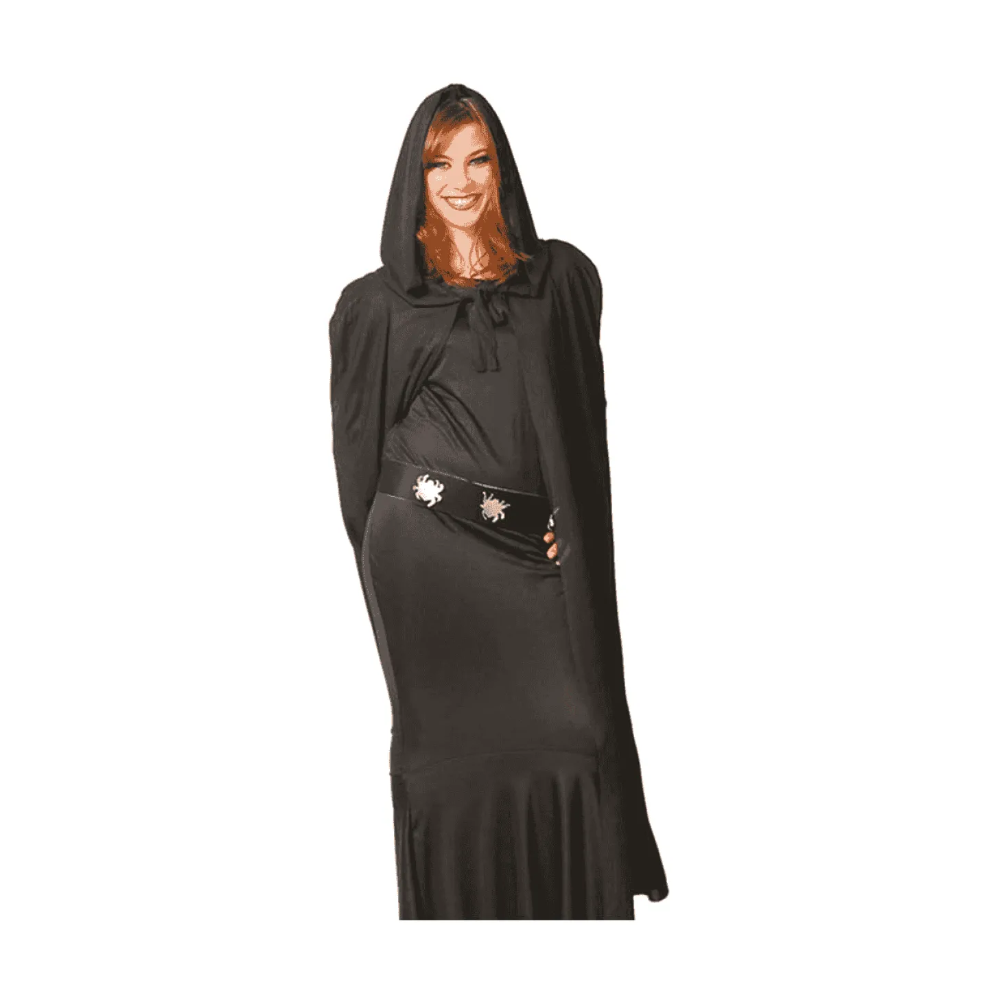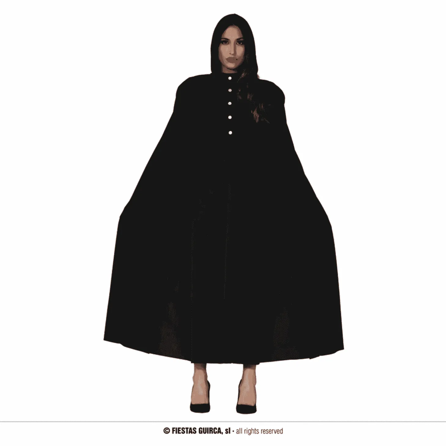 Esta capa es el complemento perfecto para transformar tu look y añadir un toque de misterio a cualquier disfraz. Su diseño negro clásico se adapta a una amplia gama de personajes y estilos, desde brujas malévolas hasta héroes enmascarados. La capa cuenta con una capucha que agrega un elemento adicional de intriga y estilo.