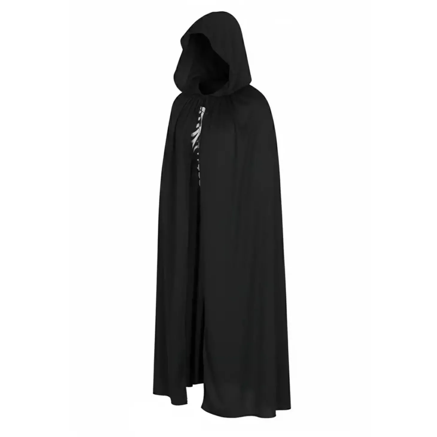 - Capucha grande y envolvente, que aporta ese aire misterioso ideal para disfraces.