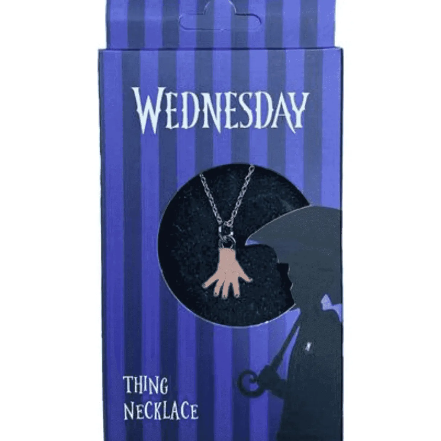 El collar de Mano-Cosa es un accesorio exclusivo inspirado en el misterioso y leal compañero de Miércoles Addams. Este collar presenta una detallada figura de Cosa, la mano que ha cautivado a los fans de la serie. Hecho de metal resistente, es perfecto tanto para el uso diario como para completar un look gótico inspirado en Wednesday.