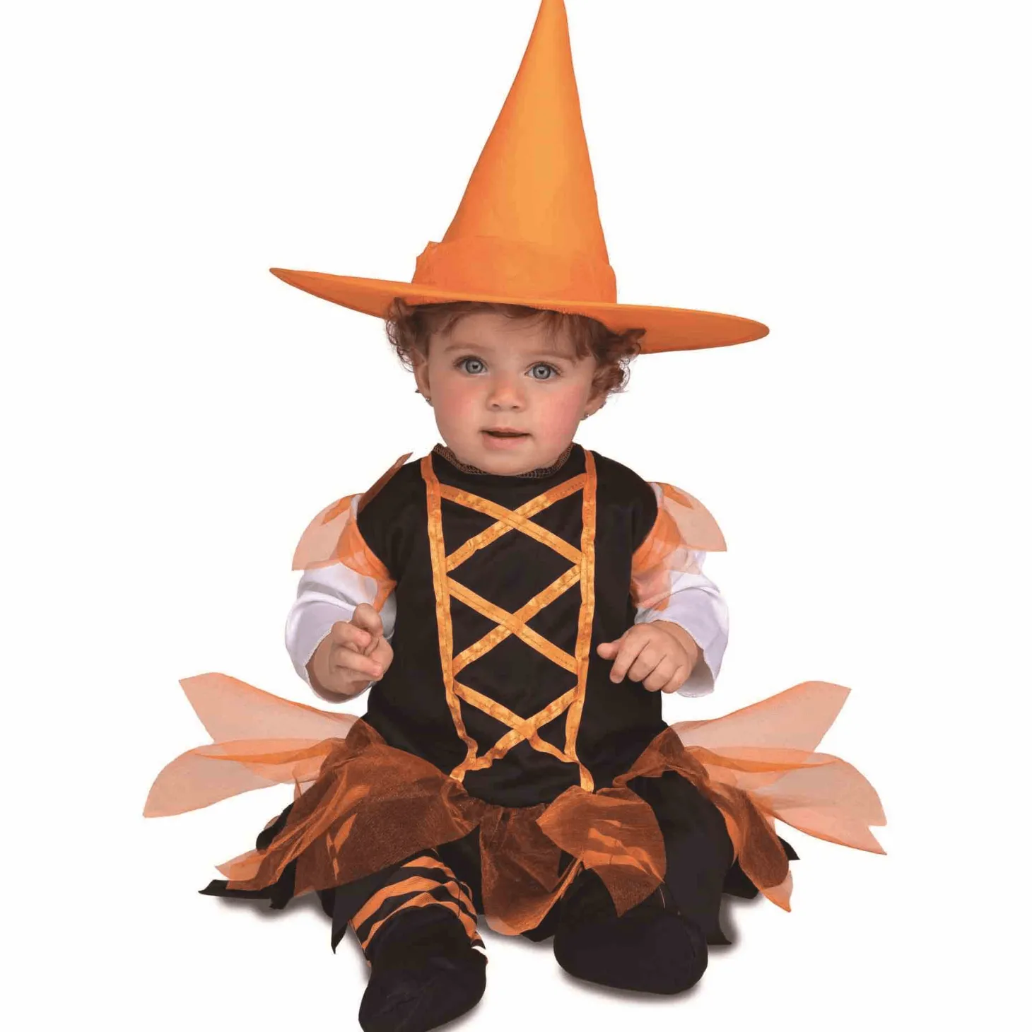 Este disfraz de Brujita Naranja es ideal para bebés entre 12 y 24 meses. El conjunto incluye un vestido en tonos naranjas y negros con detalles brillantes y un sombrero de bruja a juego. Los materiales son suaves y cómodos, asegurando que tu bebé disfrute de Halloween o Carnaval sin molestias. El disfraz cuenta con velcro en la espalda para ponerlo y quitarlo fácilmente. Disponible en varias tallas: 12 a 24 meses. Resto de complementos no incluidos. Perfecto para las fotos más adorables y para disfrutar de una noche mágica.
