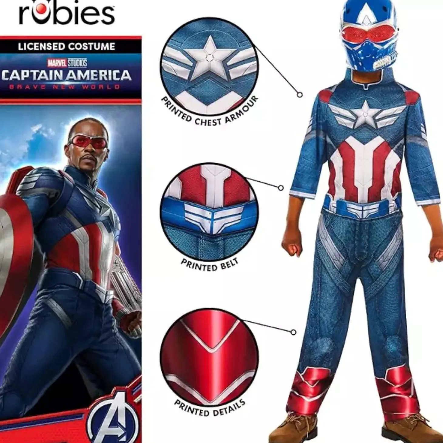 Traje estampado, máscara incluida, diseño Marvel Sam Wilson, licencia oficial Rubie’s. - Todo lo que puedes hacer con el Disfraz Capitán América
