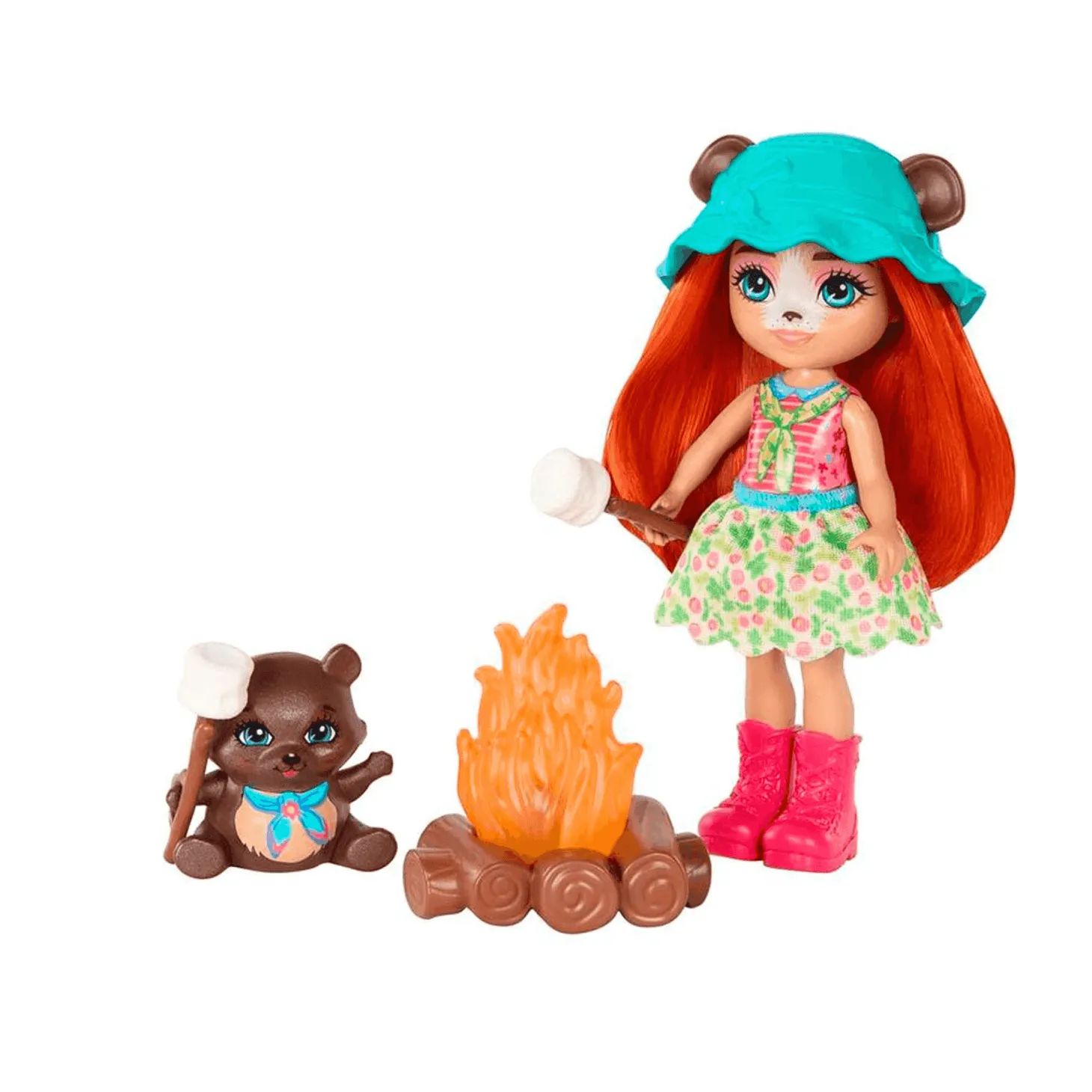 - Muñeca y Amigos Animales: Incluye una muñeca Enchantimals y sus fieles amigos animales, todos listos para una experiencia de campamento.