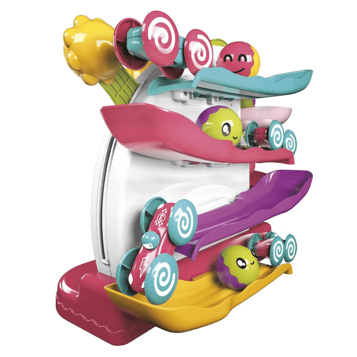 ¡Es un juguete 2 en 1! Colorido circuito de doble cara, con múltiples detalles divertidos, con el que los peques desarrollarán su motricidad, agudeza visual y aprenderán la relación causa-efecto. Además, tiene sonido y música. Dos modos de juego: tobogán de bolas y carrera de coches.