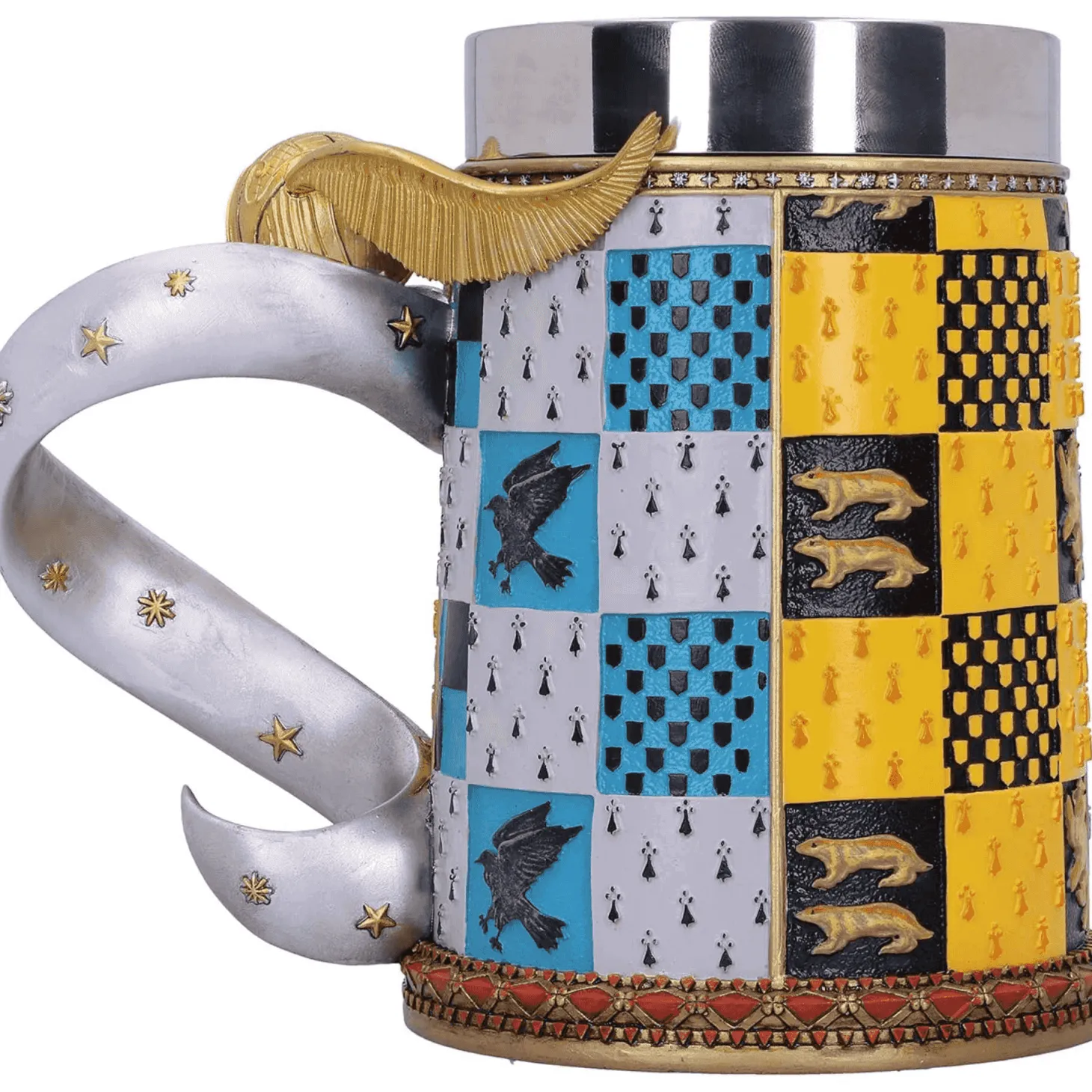 Si eres un verdadero fan de Harry Potter y sueñas con atrapar la Snitch Dorada, esta jarra de cerveza de 15,5 cm es el complemento perfecto para tus momentos mágicos. Fabricada en poliresina de alta calidad y con un interior de acero inoxidable, esta jarra combina funcionalidad y un diseño espectacular inspirado en el mundo del Quidditch.