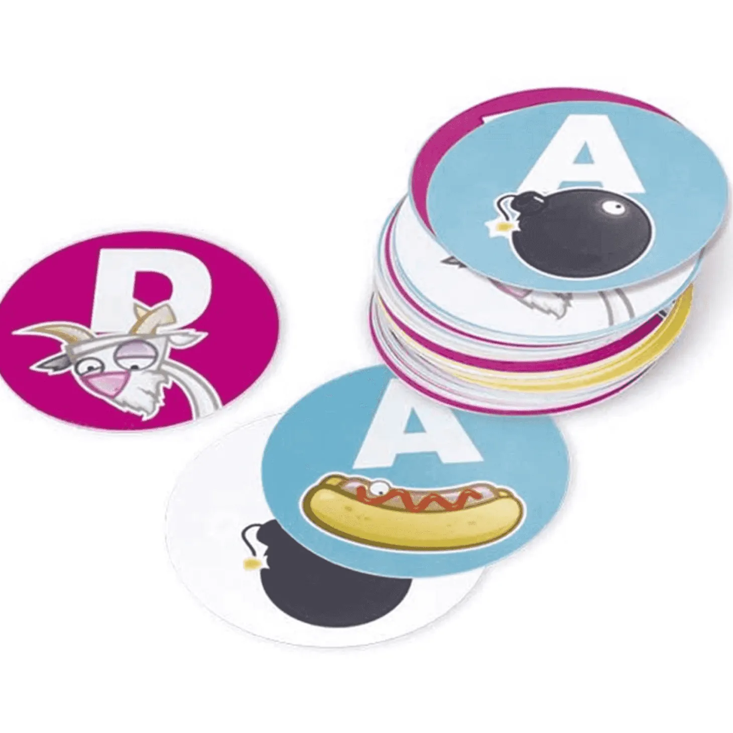 - Juego de reconocimiento y reacción; debes formar combinaciones de colores, objetos o letras para descartarte de cartas; el primero en quedarse sin cartas gana
