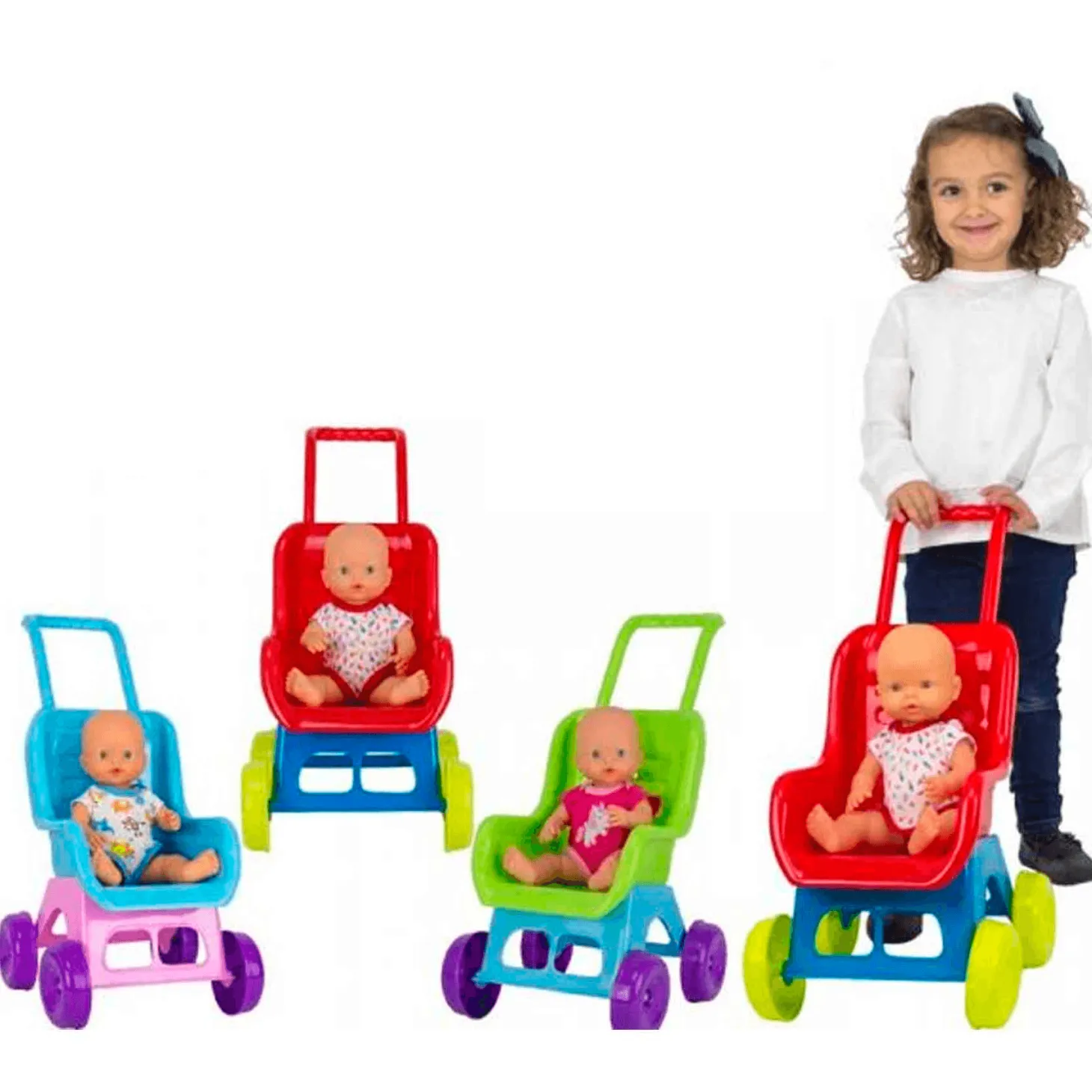 Muñeca bebé con silla de paseo
