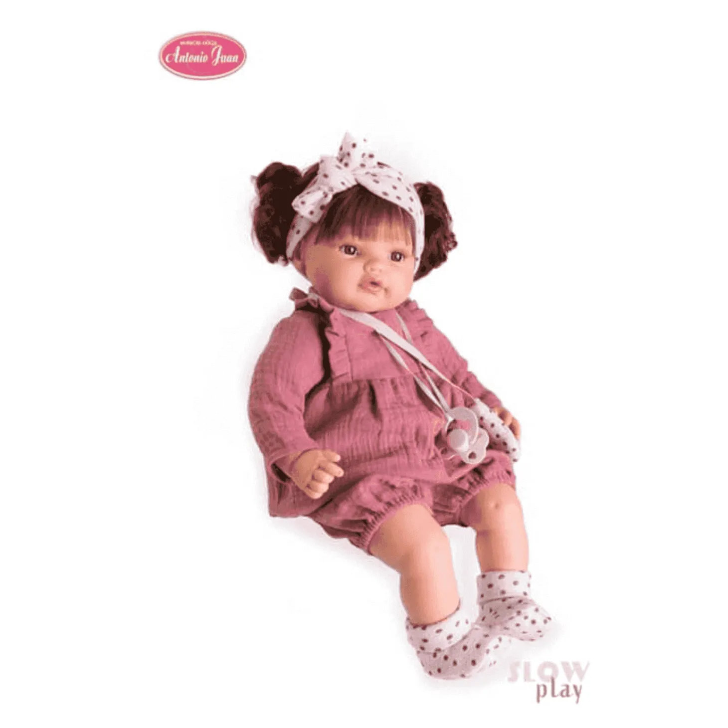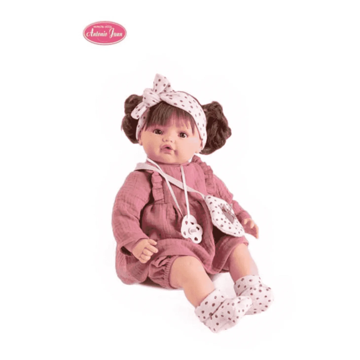 Además, Beni es una muñeca de Antonio Juan con mecanismo de sonido. Si le quitas el chupete, comenzará a llorar y llamar a sus papás, pero cuando se lo pongas de nuevo, se calmará al instante.