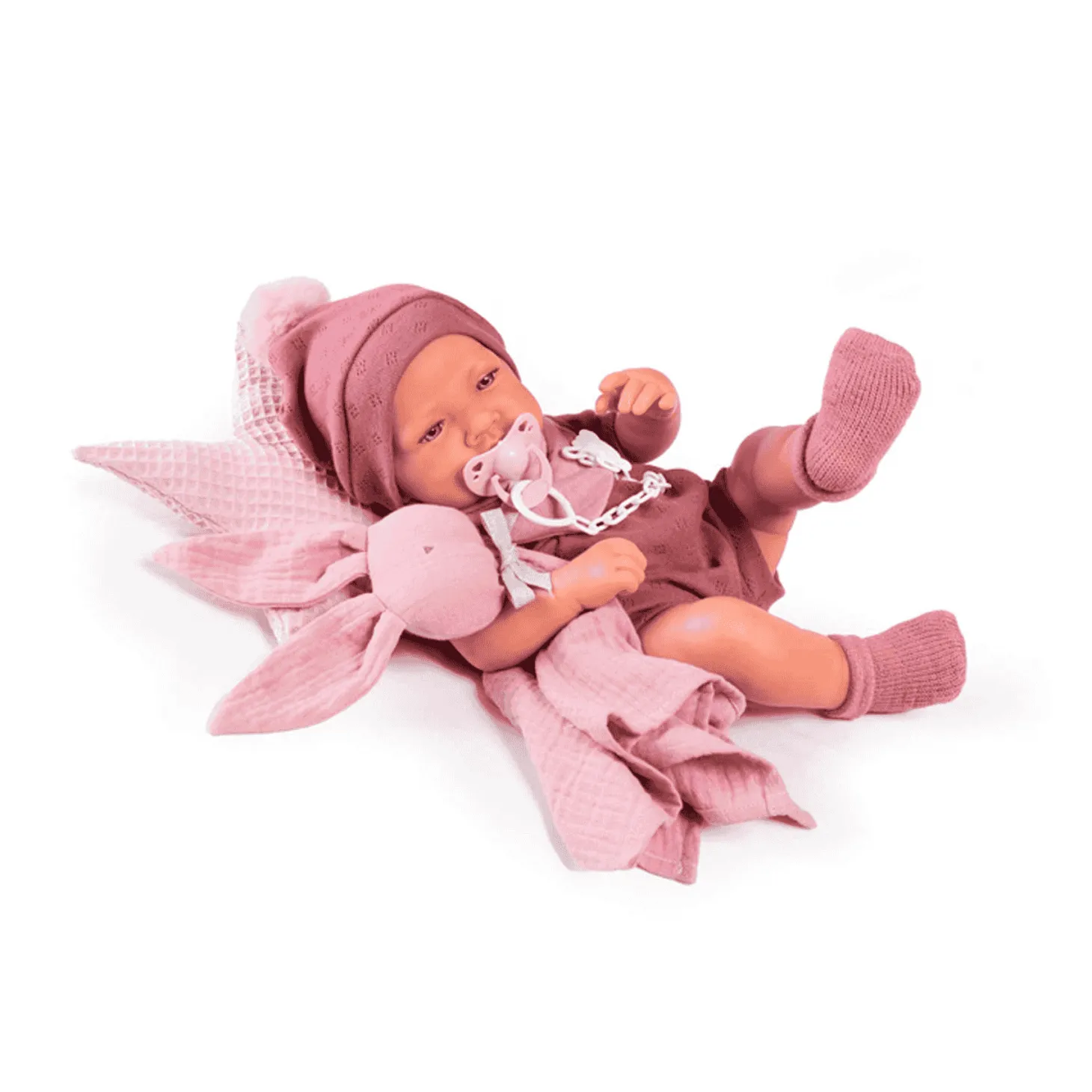 Con su cuerpo de vinilo sexuado, su textura suave y sus adorables facciones realistas, esta muñeca es perfecta para los pequeños que disfrutan del juego simbólico, desarrollando el amor y el cuidado por los bebés desde temprana edad.