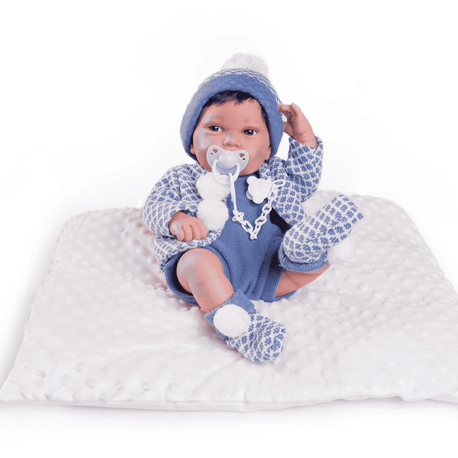 - Muñeco realista de 42 cm, con cuerpo de vinilo suave y sexuado.