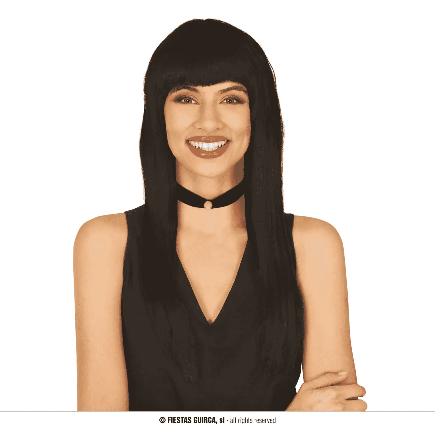 Peluca Melena Negra Complemento Disfraz