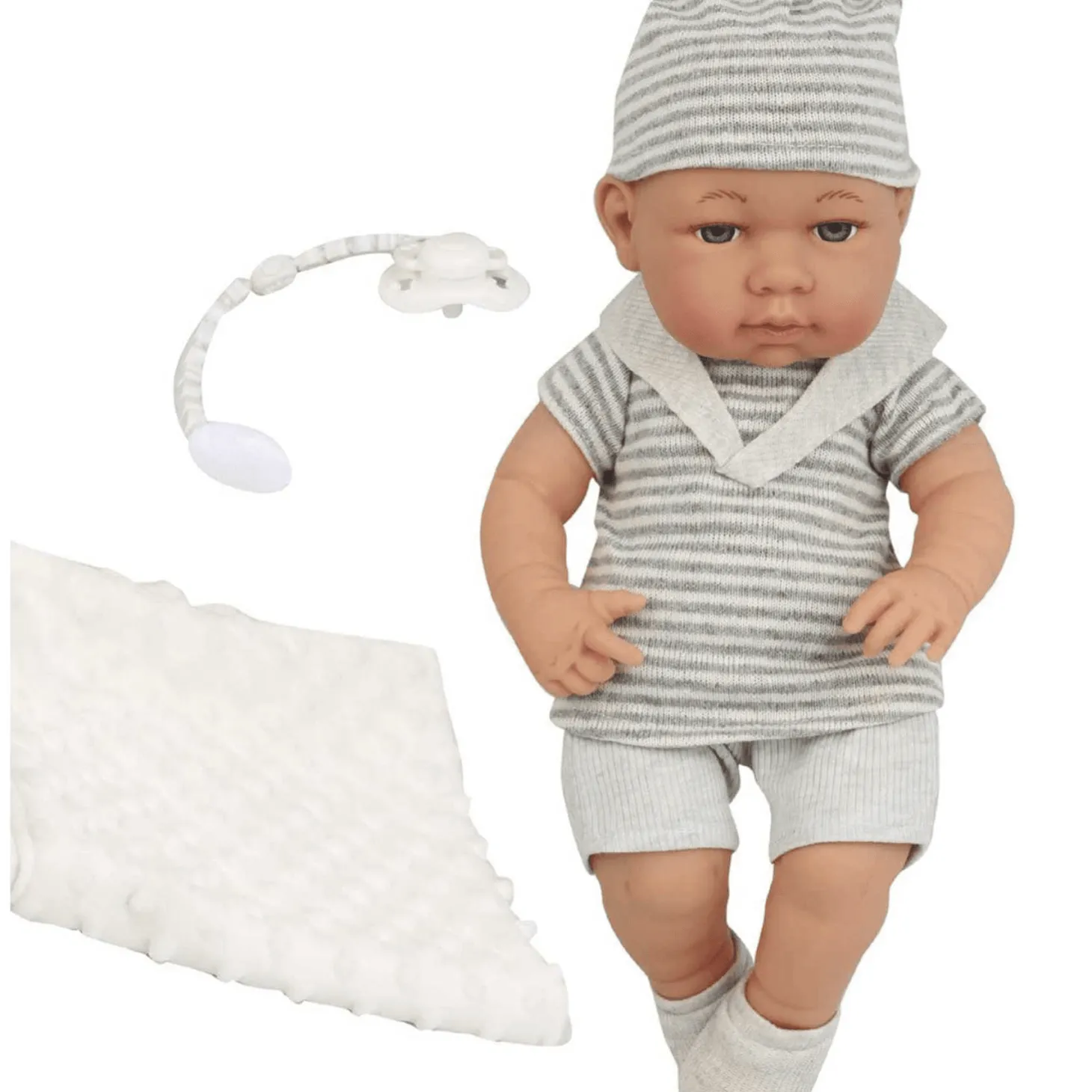 Este muñeco bebé de nuestra marca propia PequeBB es un acompañante perfecto para bebés y niñas y niños, bastante resistente al estar hecho de vinilo y fácil de transportar y llevar a todos lados, se puede usar sin problemas. El bebé Martin Toquilla es considerado un juguete de colección
