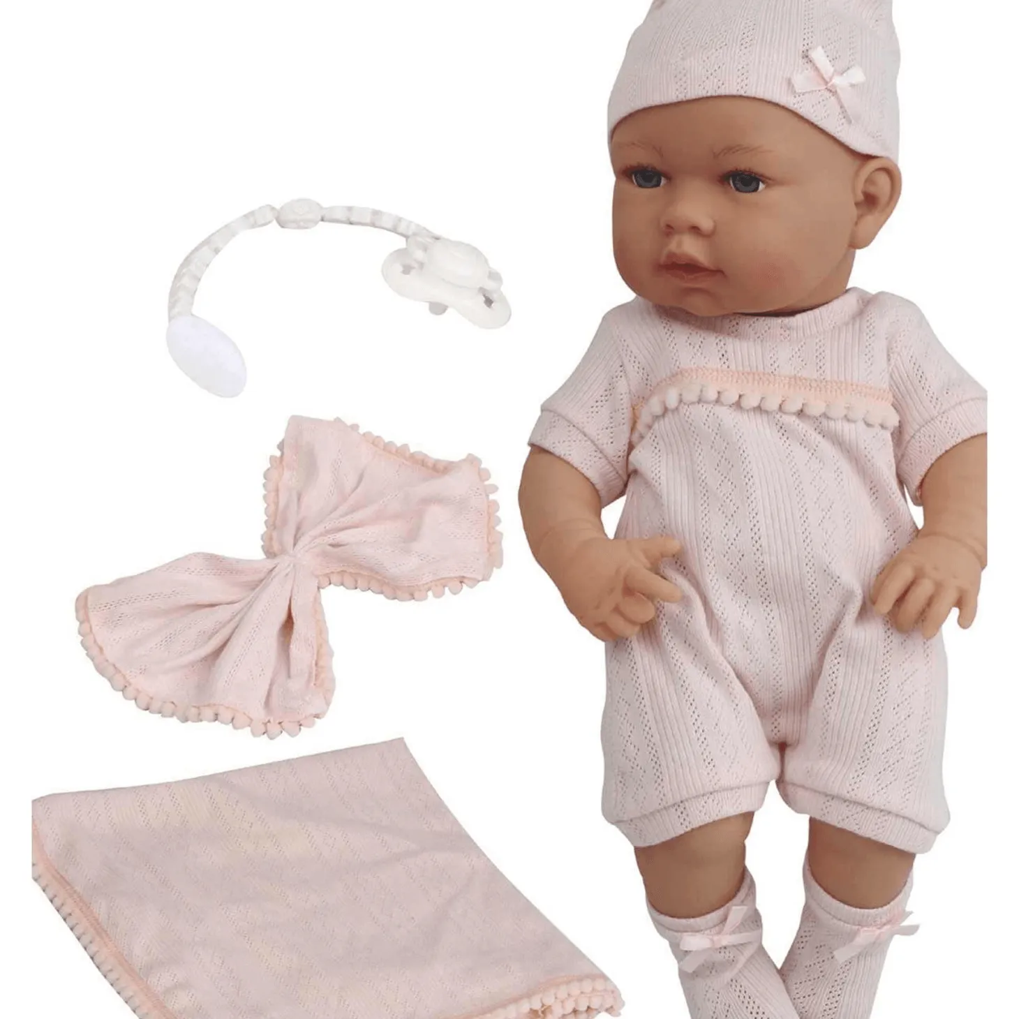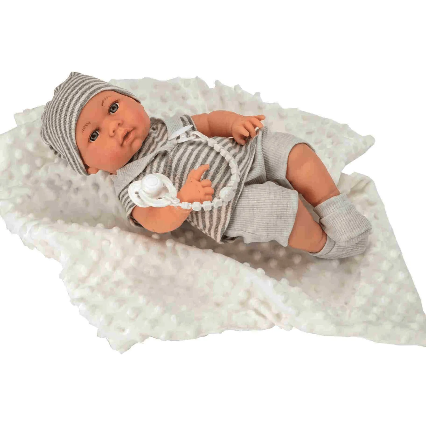 Dale la bienvenida a la familia a este juguete de bebé Martin Toquilla, este precioso recién nacido llegará para alegrar la casa y acompañar a los más pequeños de la casa, es un bebé dulce y realista. Posee un muy lindo conjunto de ropa que le permiten estar presentable para cualquier salida, además de un cojín muy bonito para ponerlo a dormir, y un chupete que hará la perfecta compañía a la hora de acostarlo. Es muy fácil de coger y de llevar a todos lados, así que está listo para cualquier salida. Será la compañía perfecta para los más pequeños.