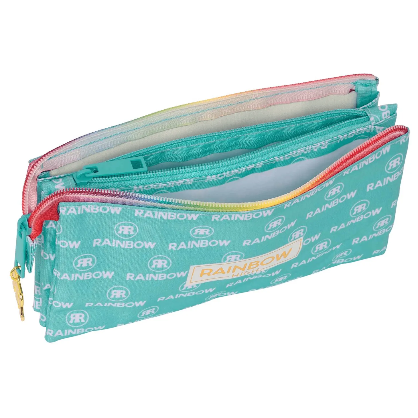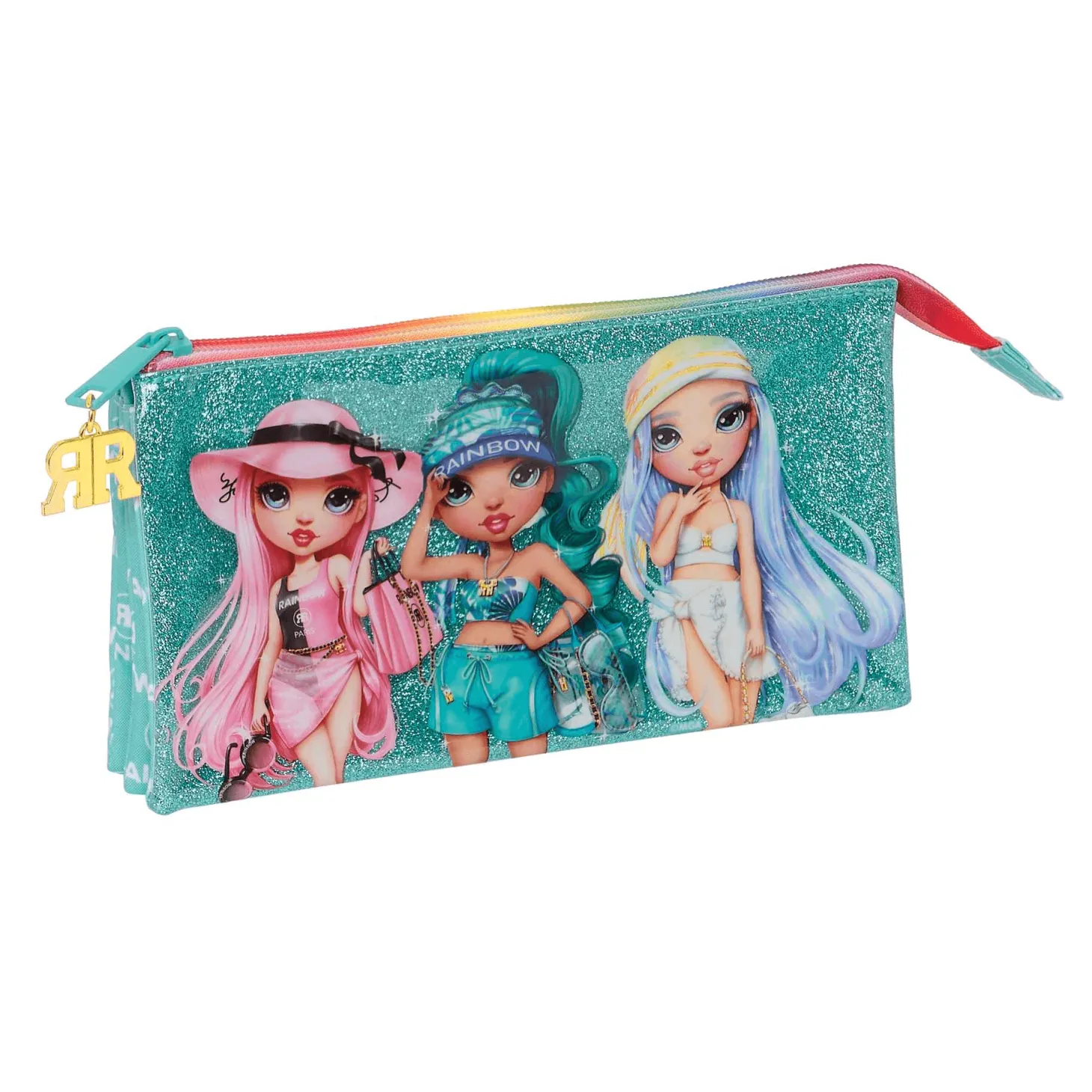 Para los fans de Rainbow High, el Portatodo Triple Rainbow High ´Paradise´ es el accesorio perfecto para llevar todos tus útiles escolares de manera organizada y con estilo. Este portatodo no solo es práctico, sino que también destaca por su diseño vibrante y colorido.