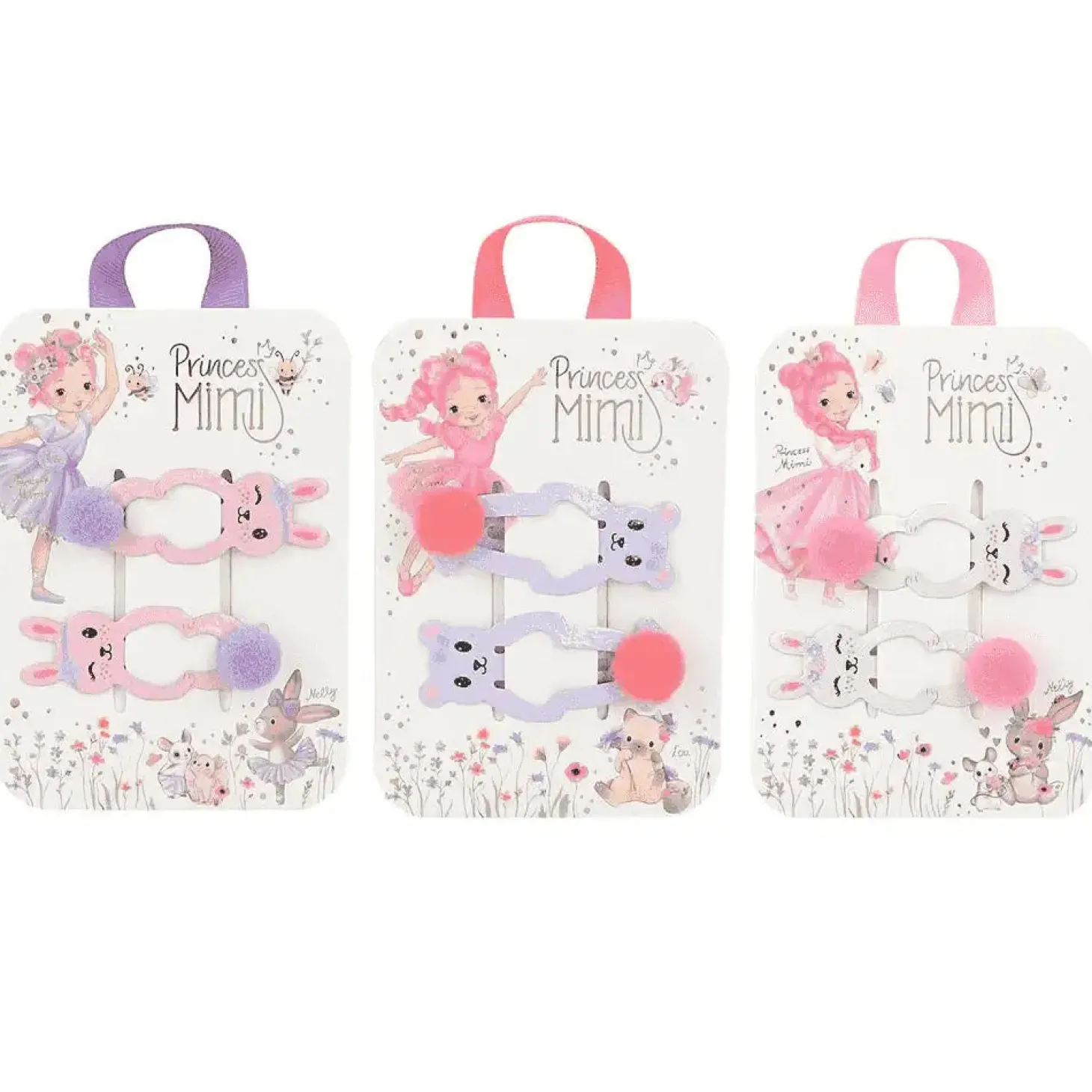 Descripción del producto: Para peinados una animalada de chulos. Las hebillas con forma de animales están rematadas en el extremo con un pompón de peluche. Tres diseños: oso color lila pálido con purpurina y pompón rosa salmón, conejo blanco con purpurina y pompón rosa, conejo rosa con purpurina y pompón lila. Cada set se compone de dos hebillas presentadas en soporte de cartulina. DePrincess Mimi.