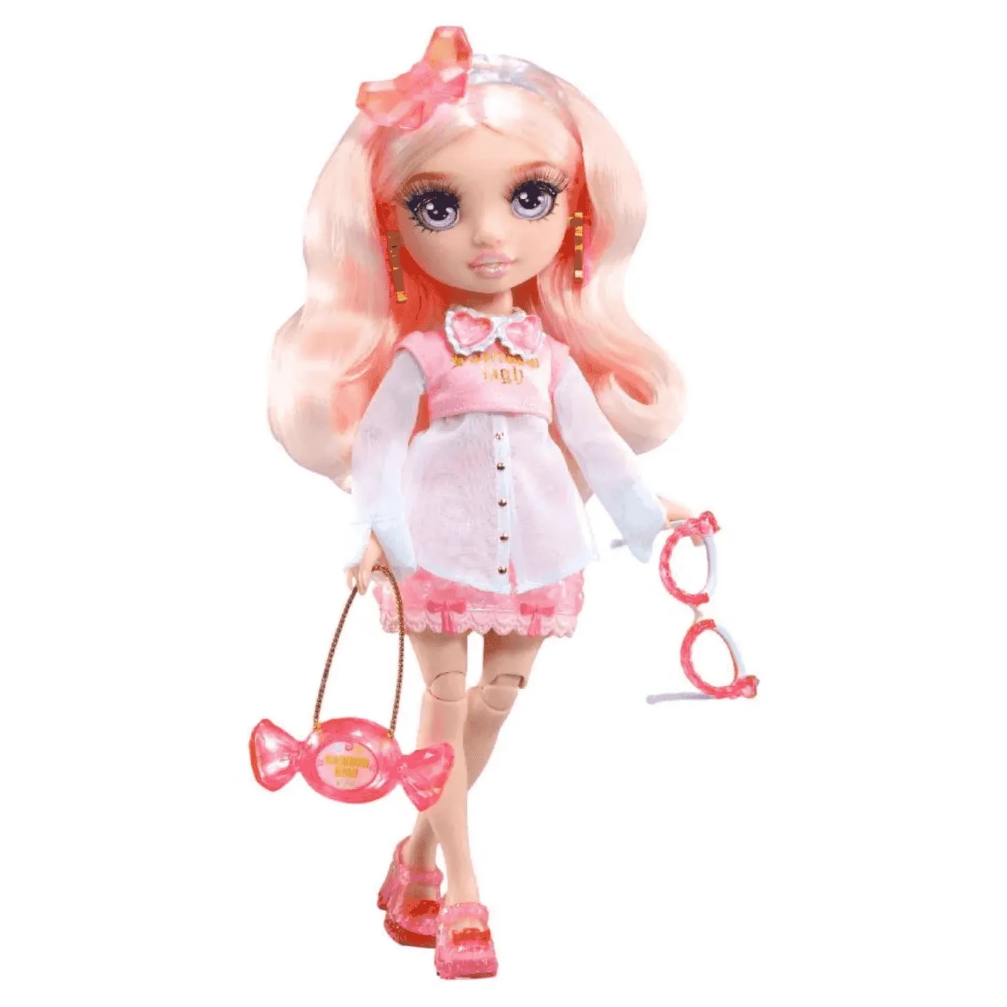 - Muñeca Bella exclusiva: Vestida completamente en tonos rosas, Bella luce un atuendo elegante y detallado, con cabello rosa peinable, pestañas largas y ojos de cristal.