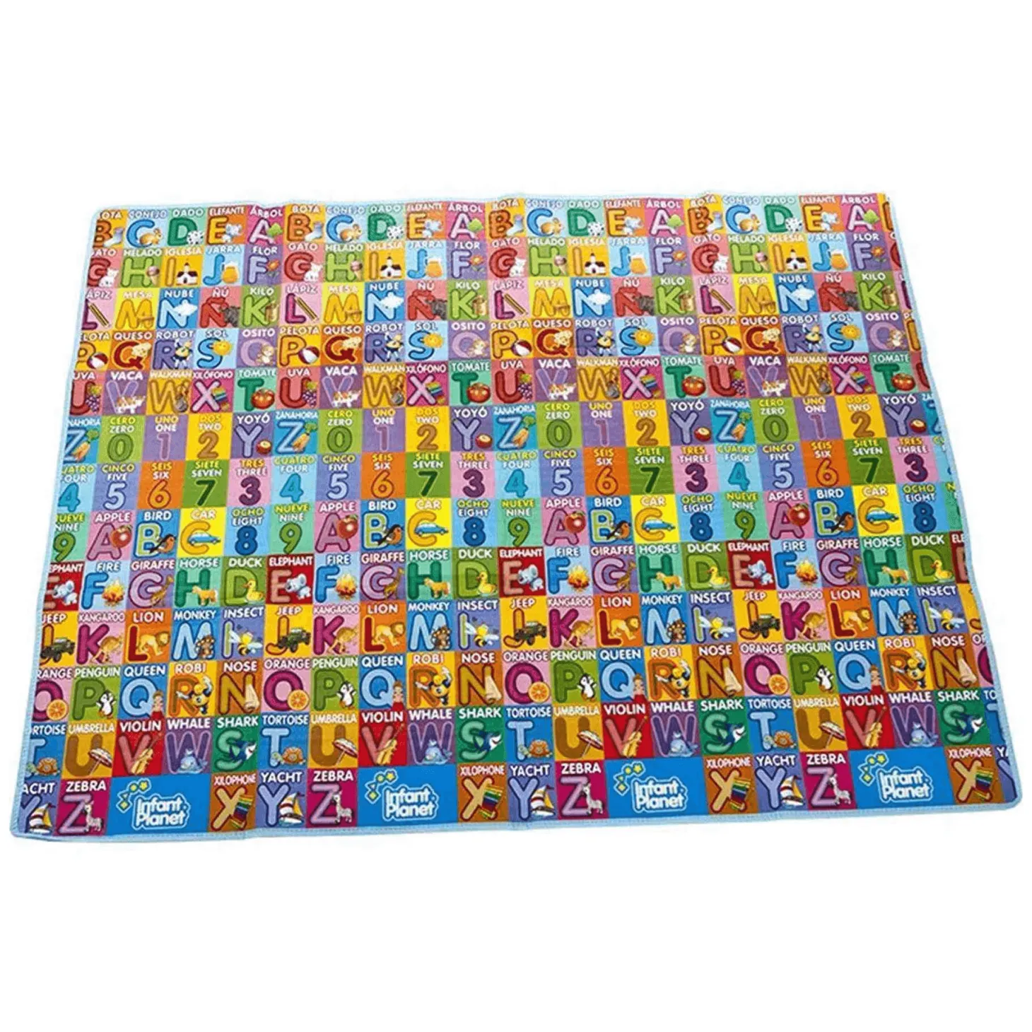 Es algo bonito, sencillo y práctico. Tiene una imagen comparativa que la acompaña para que tus niños en edad preescolar practiquen el abc de forma básica y divertida. Ideal para llevar de viaje o de vacaciones, este tapiz es delicado y muy suave, pensado para que los niños puedan caer sin riesgo sobre el tapiz.