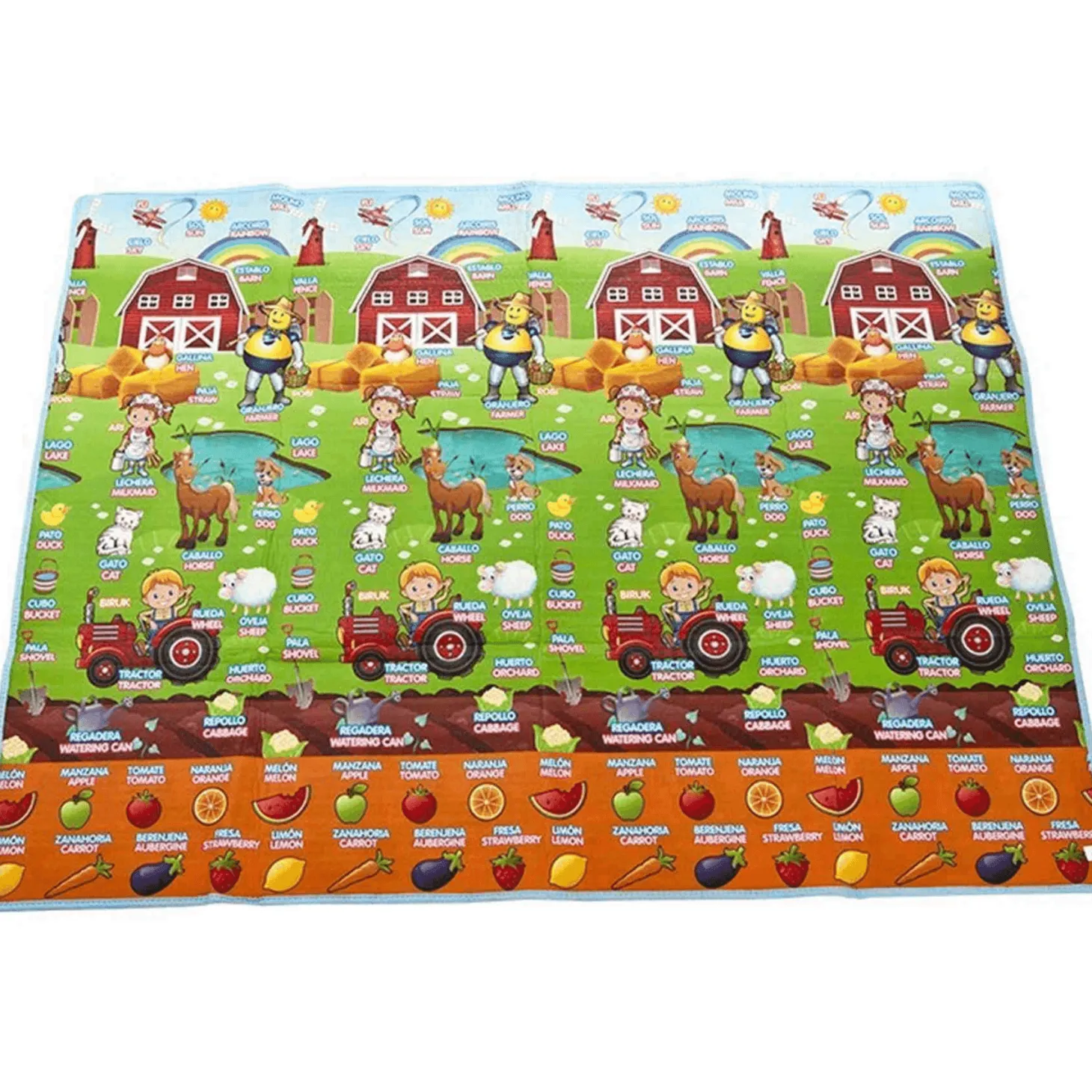 Aprende y juega con Súper Robi Tapiz 2 Caras Bilingüe un método increíble de instrucción e ilustrativo que conecta con cada letra grande, palabras y dibujos a los peques, descubriendo cómo hacer una interpretación de las mismas. Consigue que se familiaricen con sus primeras palabras en inglés.