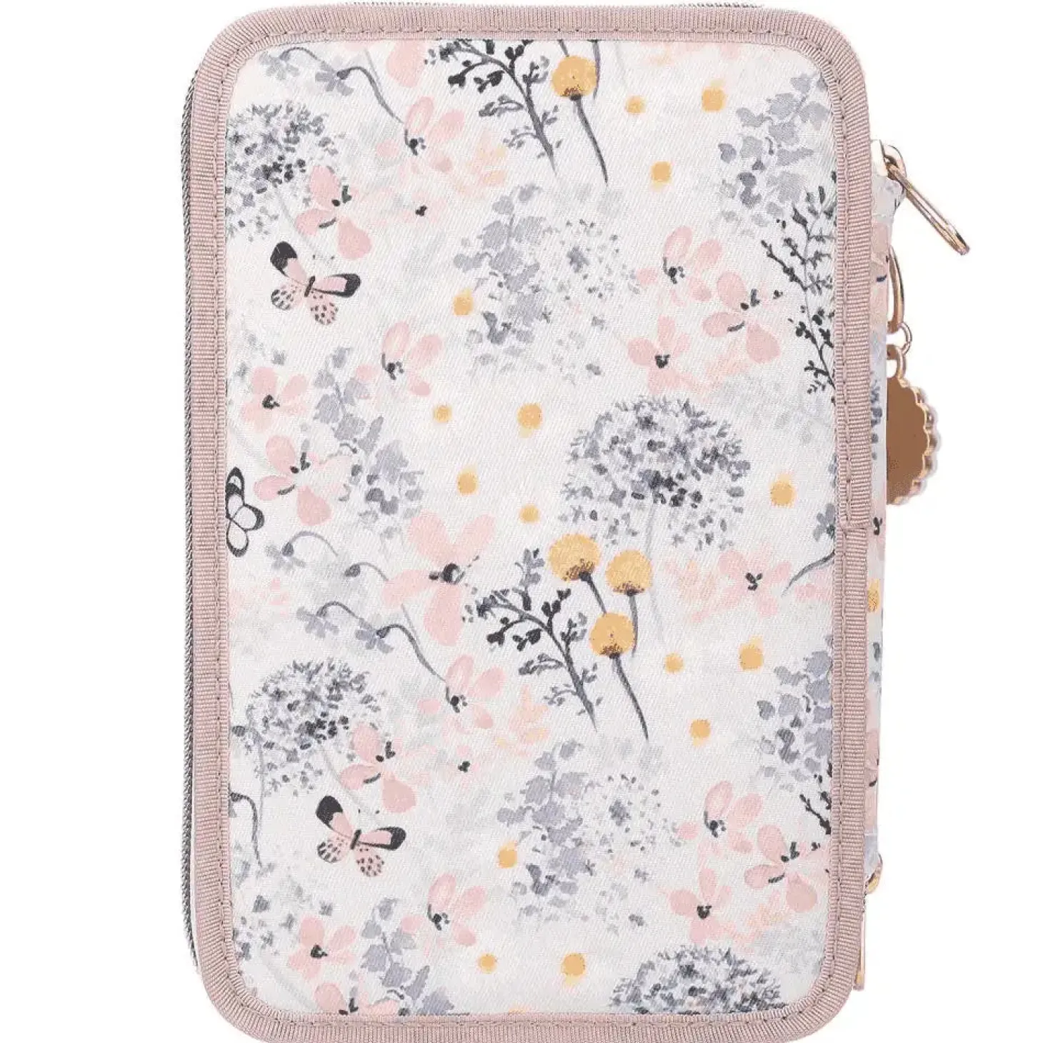 Descripción del producto: ¡Fantásticamente floral! El estuche de 3 pisos de TOPModel lleva un romántico motivo de una modelo rodeada de delicadas flores y mariposas. Plus monísimo: el colgante de flor en la cremallera. Los tres compartimentos separados vienen completamente llenos con 18 lápices de colores, 18 rotuladores, 2 lápices, sacapuntas, goma de borrar, regla, tijeras y pegamento en barra; el estuche incluso va provisto de un bolsillito interior con cierre de velcro. Material: poliéster 100 por 100.