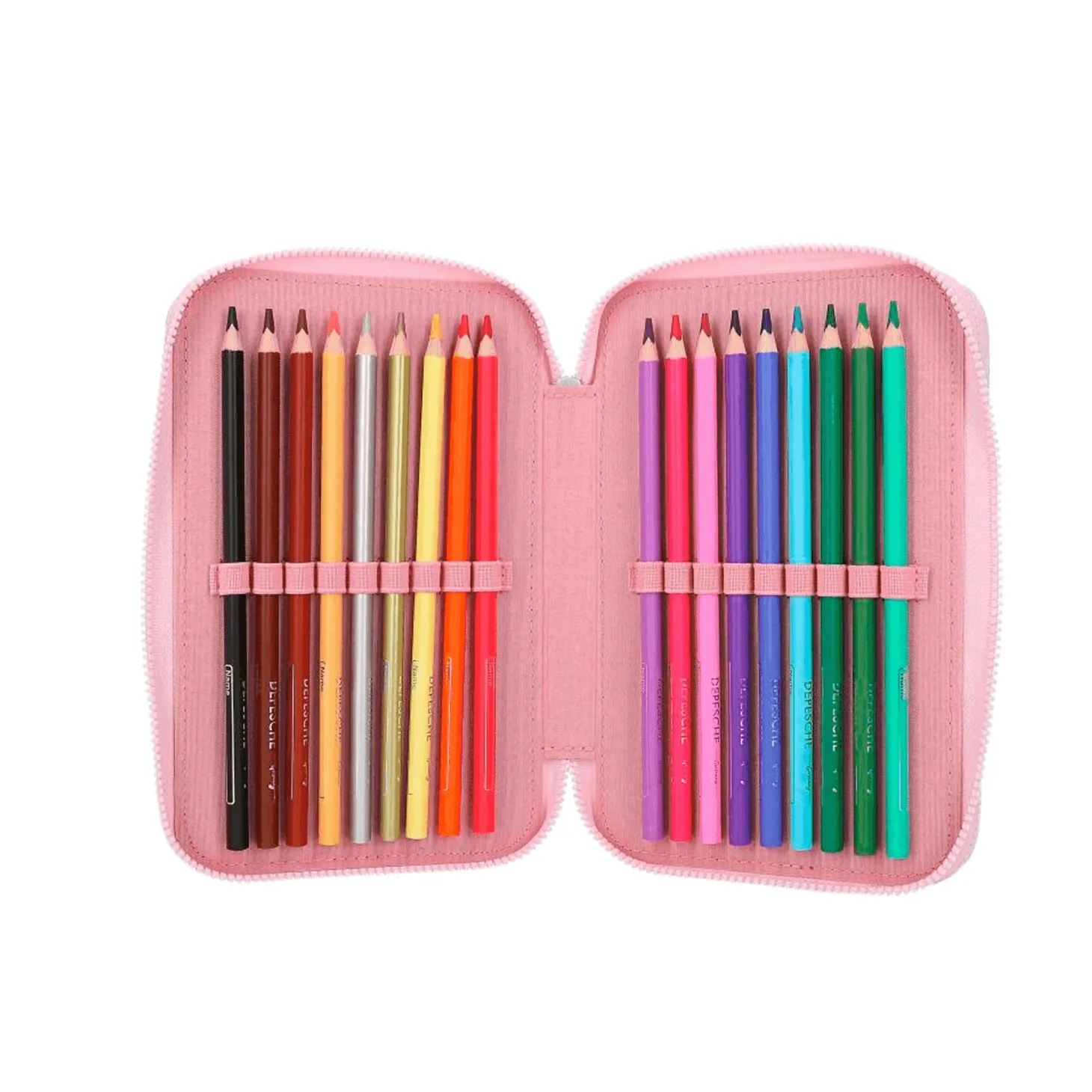 - Tres Compartimentos: Espacios separados para organizar todos los materiales de escritura y dibujo.