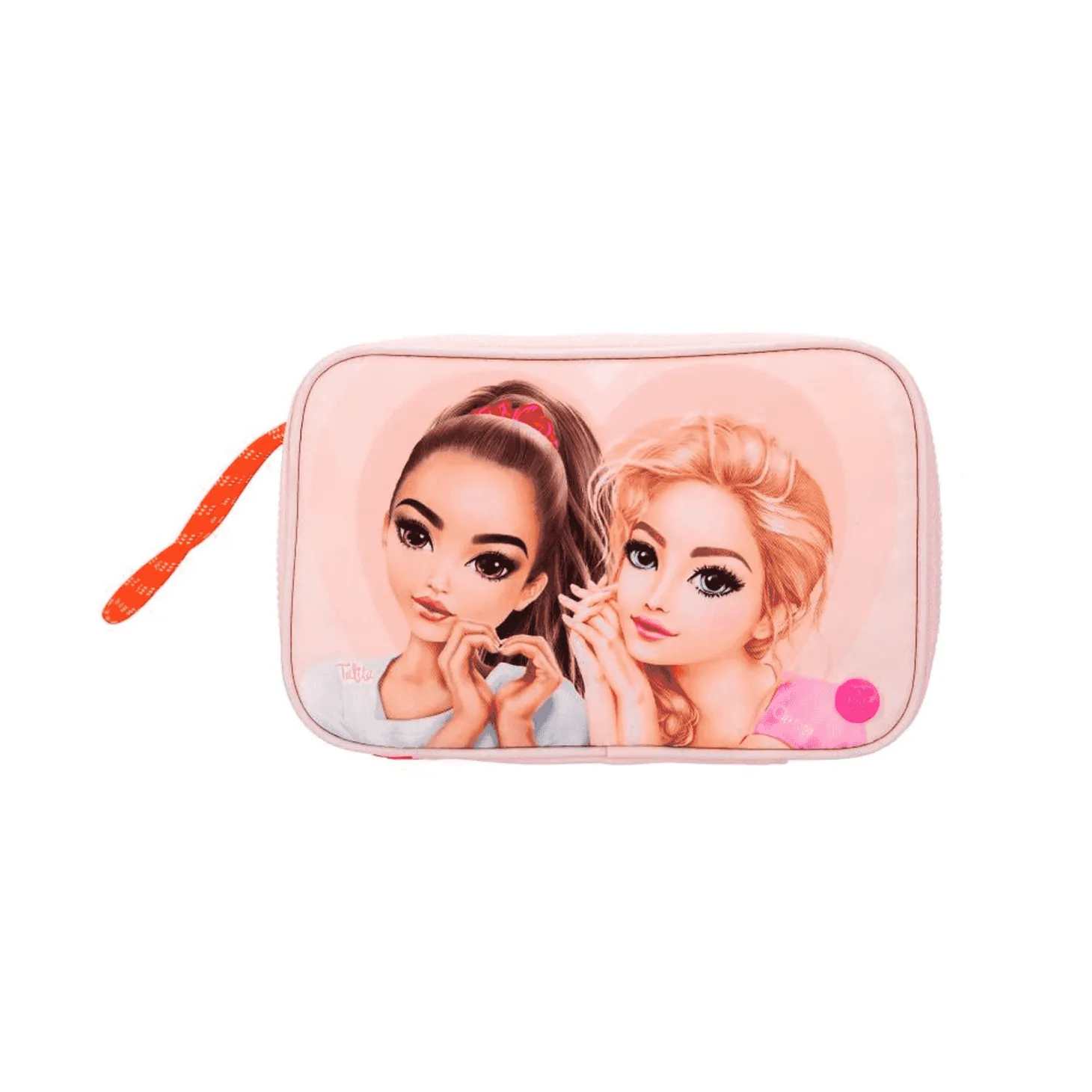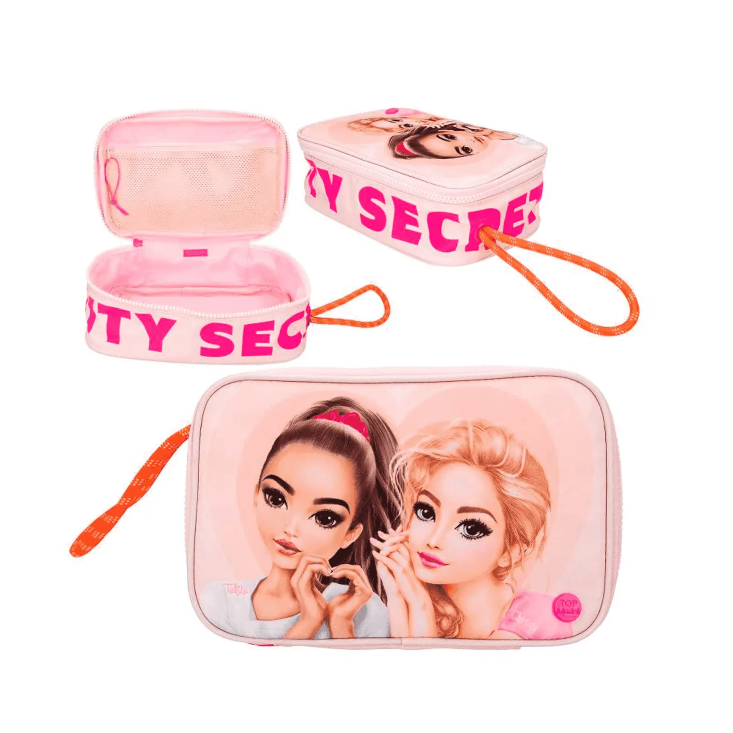 El neceser TOPModel BEAUTY and ME es el accesorio ideal para las jóvenes que desean organizar sus productos de belleza con estilo. Diseñado en un atractivo color rosa pálido, este neceser destaca por sus detalles en colores neón y un texto llamativo que recorre el lateral con la inscripción ´BEAUTY SECRETS´. La cara delantera del neceser presenta una modelo en tamaño grande, añadiendo un toque de glamour y modernidad.