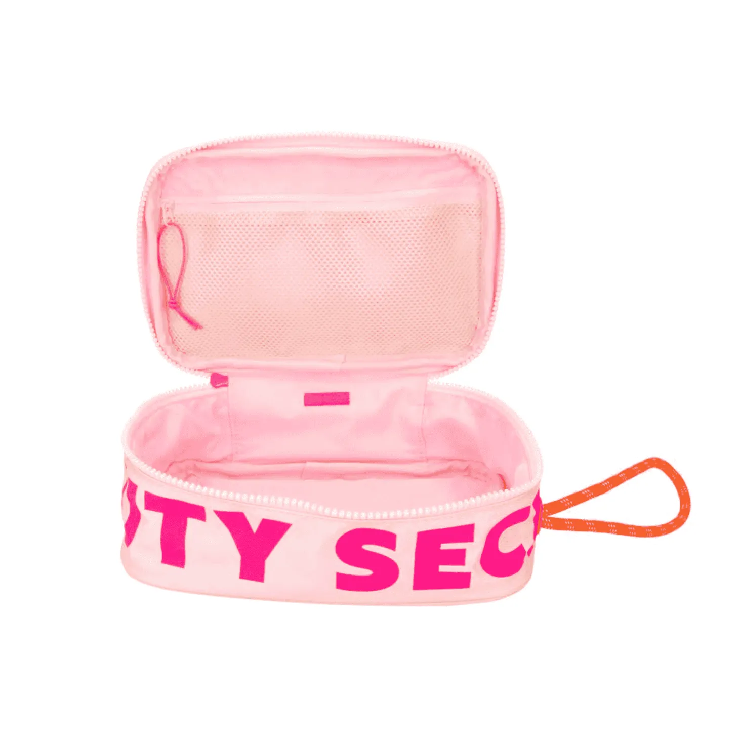 - Diseño Atractivo: Con un elegante color rosa pálido complementado por detalles neón, este neceser no solo es práctico, sino también muy estiloso. El texto ´BEAUTY SECRETS´ añade un toque distintivo y moderno.