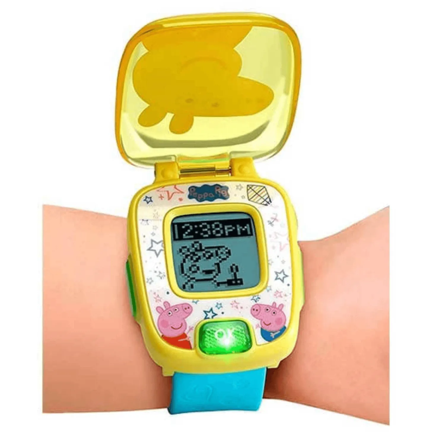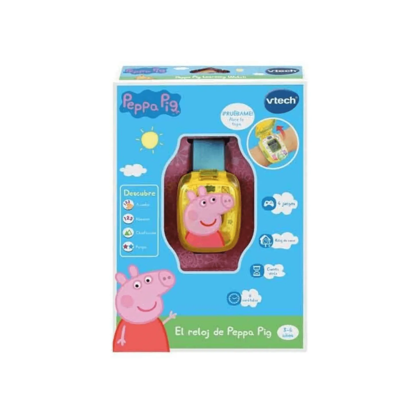 ¡Diviértete con Peppa Pig! Juega con Peppa y aprende a decir la hora con este divertido reloj. Incluye otras funciones como juegos con números, selección de carátulas, cronómetro y alarma.