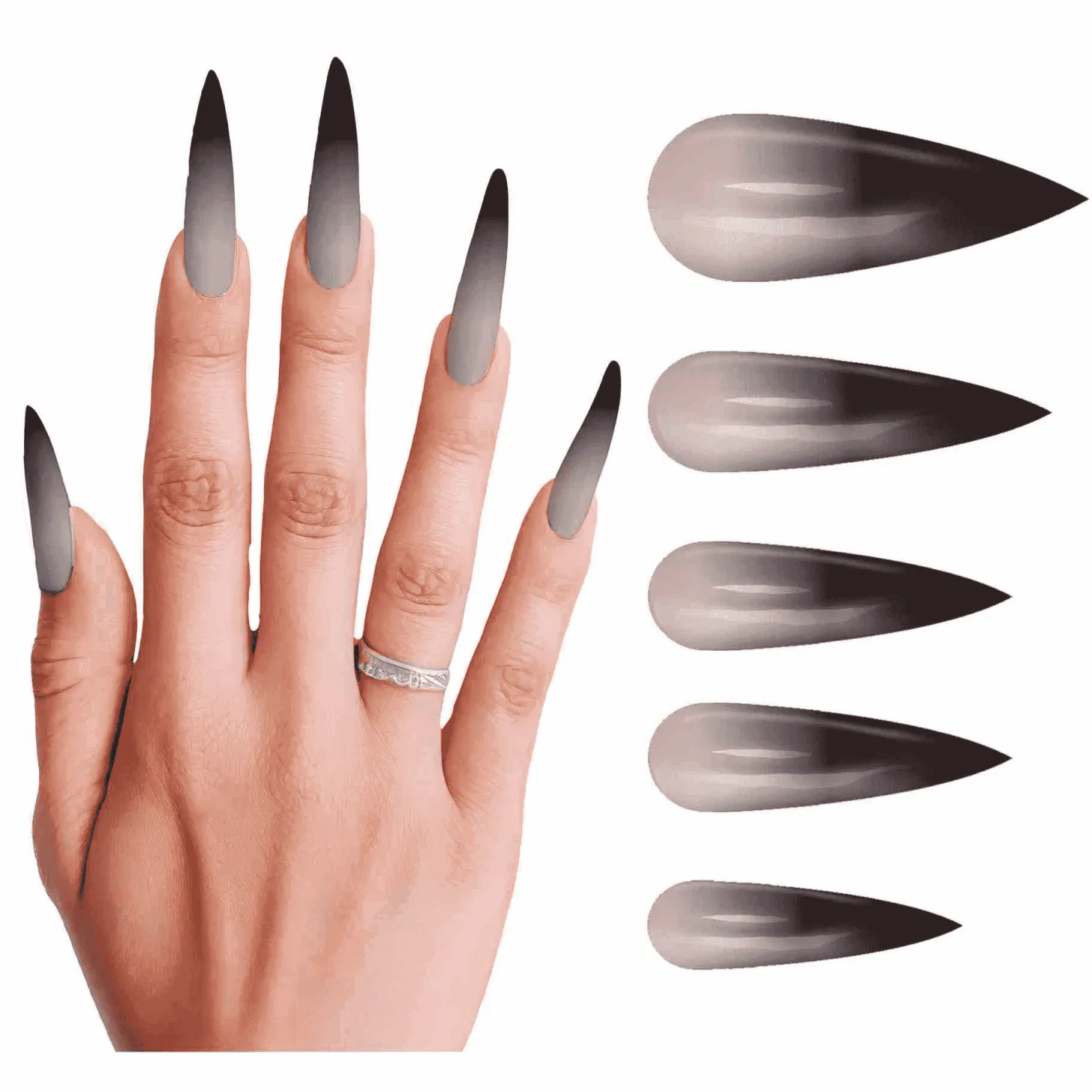 - Incluye 12 uñas postizas de estilo gótico.
