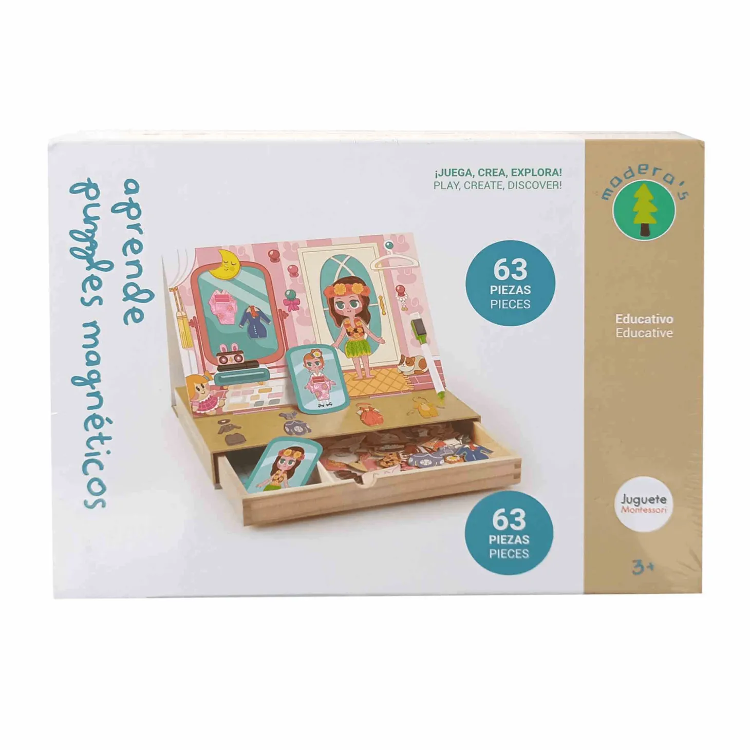 Estimula la imaginación y aprendizaje de los más pequeños con el juego Aprende Puzzles Magnéticos. Este juego educativo está diseñado para que los niños y niñas aprendan de forma divertida mientras desarrollan habilidades esenciales como la creatividad, el reconocimiento de formas y colores, y la motricidad fina. Con diferentes temáticas para elegir, cada caja incluye piezas magnéticas que pueden colocarse en el tablero para crear escenas únicas o resolver retos educativos.