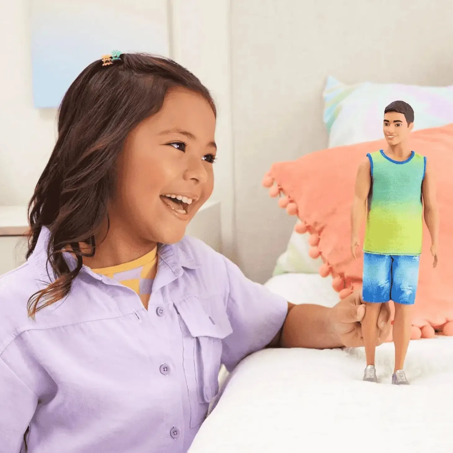 - Desde reunirse con amigos hasta pasar el rato en la playa, este muñeco Ken está vestido para cualquier aventura que niños y niñas puedan soñar.