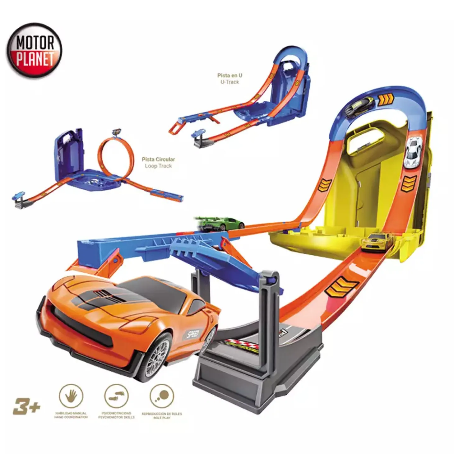 - Pistas y rampas listas para montar carreras espectaculares.