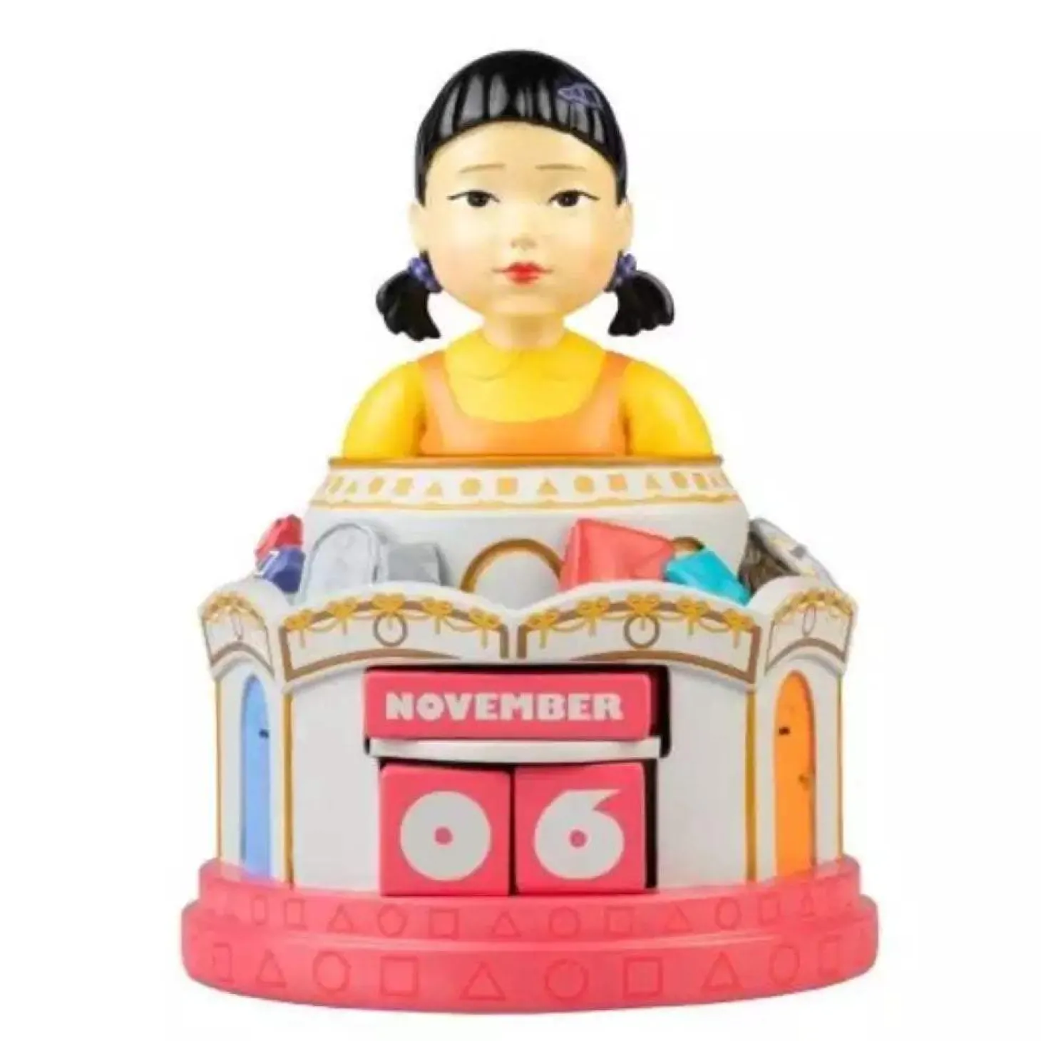 - Diseño oficial de El Juego del Calamar: Representa a la icónica muñeca del primer juego de la serie.