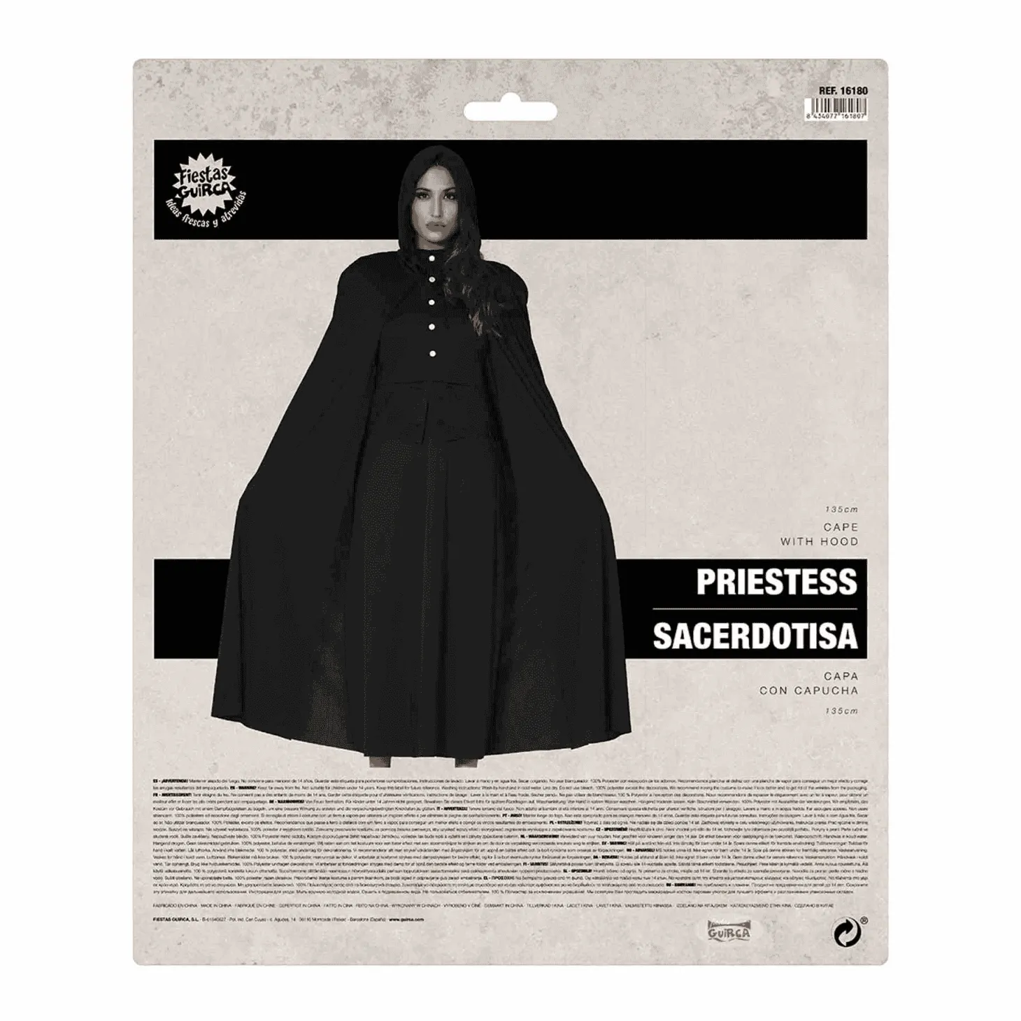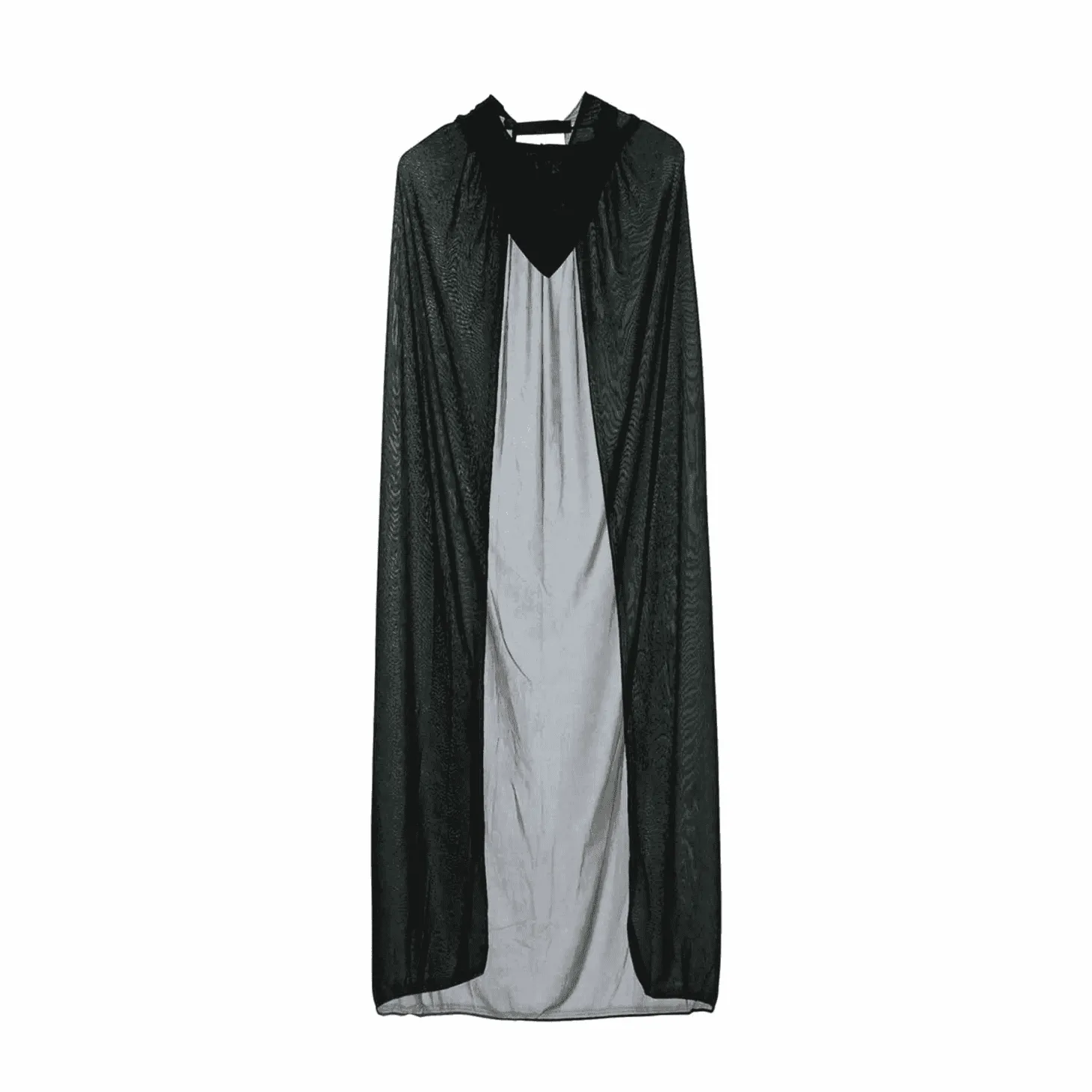 Esta capa es el complemento perfecto para transformar tu look y añadir un toque de misterio a cualquier disfraz. Su diseño negro clásico se adapta a una amplia gama de personajes y estilos, desde brujas malévolas hasta héroes enmascarados. La capa cuenta con una capucha que agrega un elemento adicional de intriga y estilo.