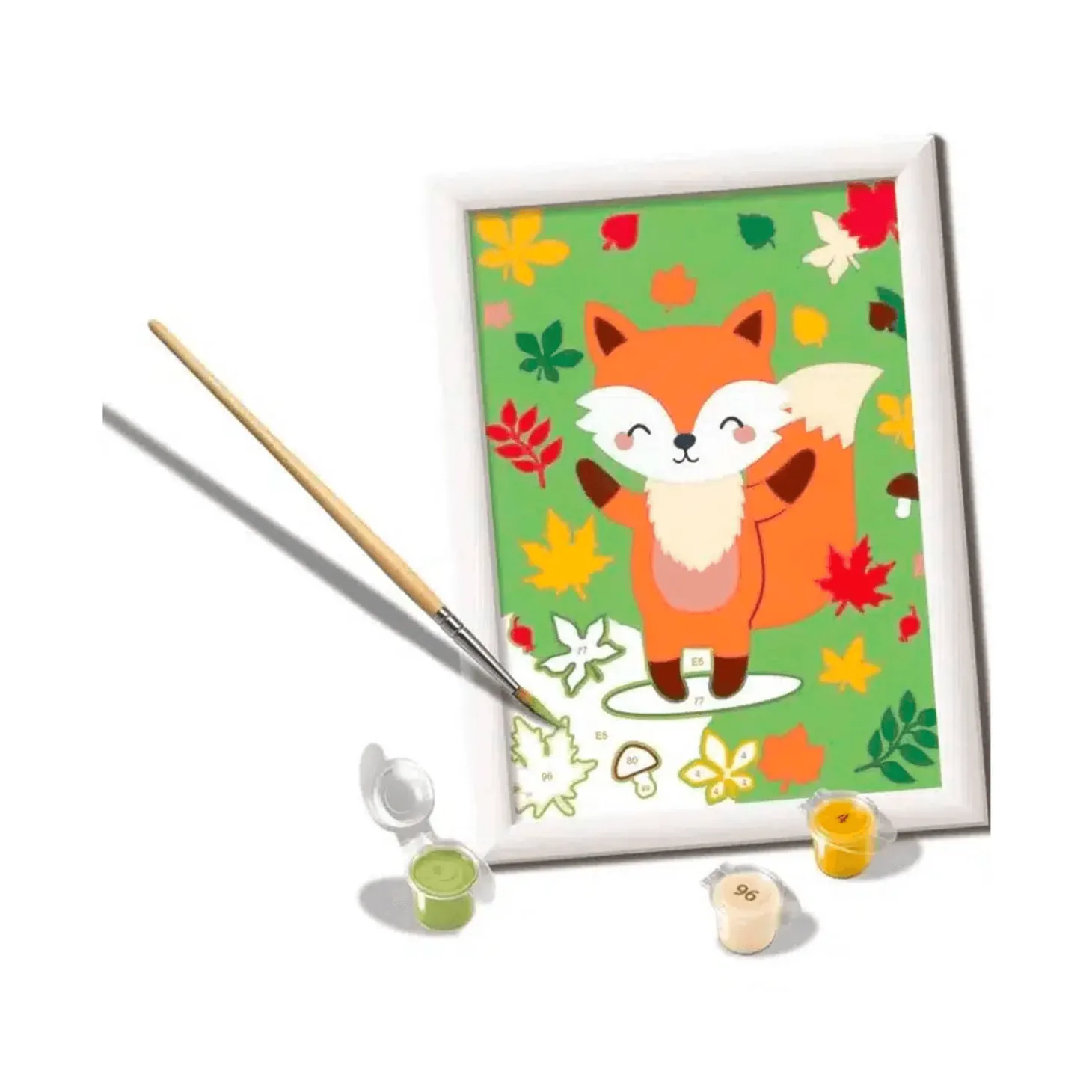 - Kit Completo: Incluye un lienzo preimpreso, pinturas acrílicas en botes individuales, un pincel de calidad y un marco.