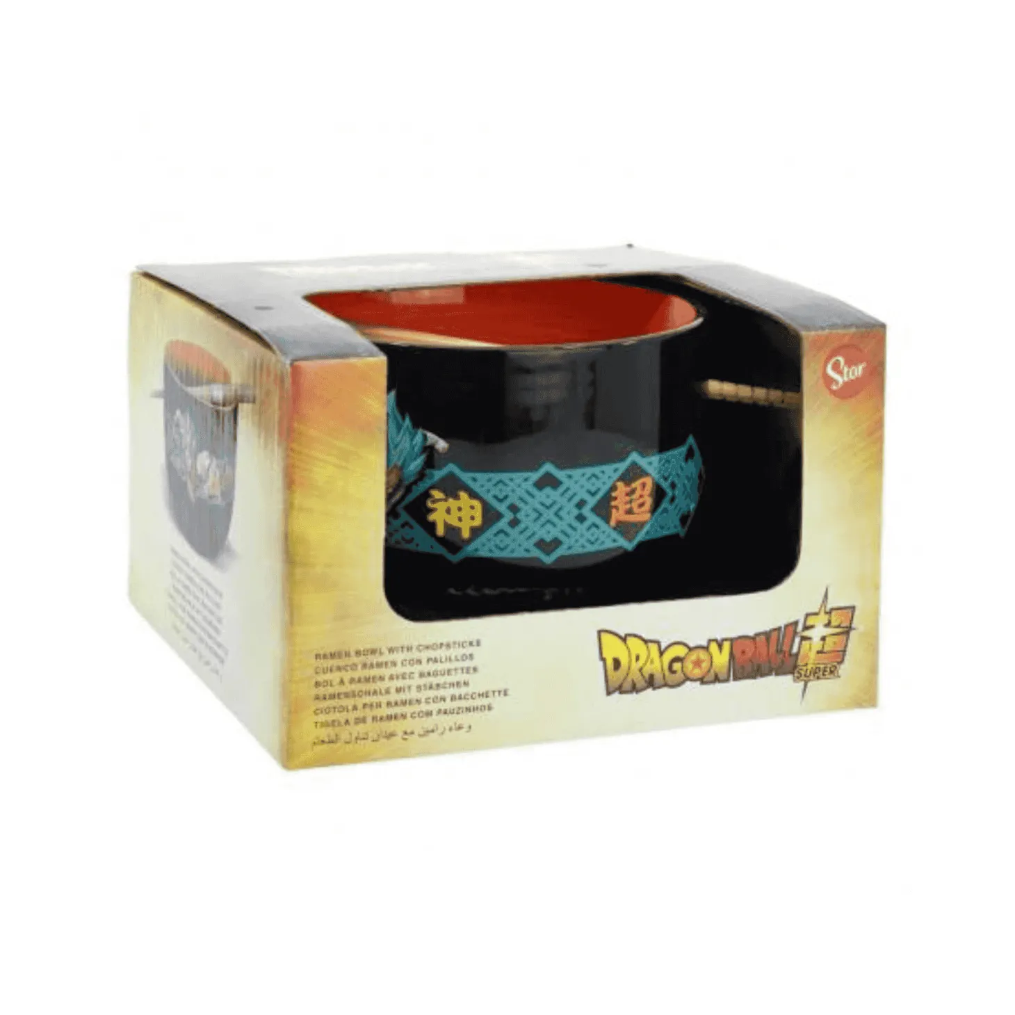 Este cuenco de ramen Dragon Ball con palillos es ideal para los seguidores del anime. Fabricado en cerámica resistente, mantiene tus comidas calientes por más tiempo. Su diseño inspirado en Goku destaca por su calidad y autenticidad, ideal para coleccionistas o como un regalo perfecto.