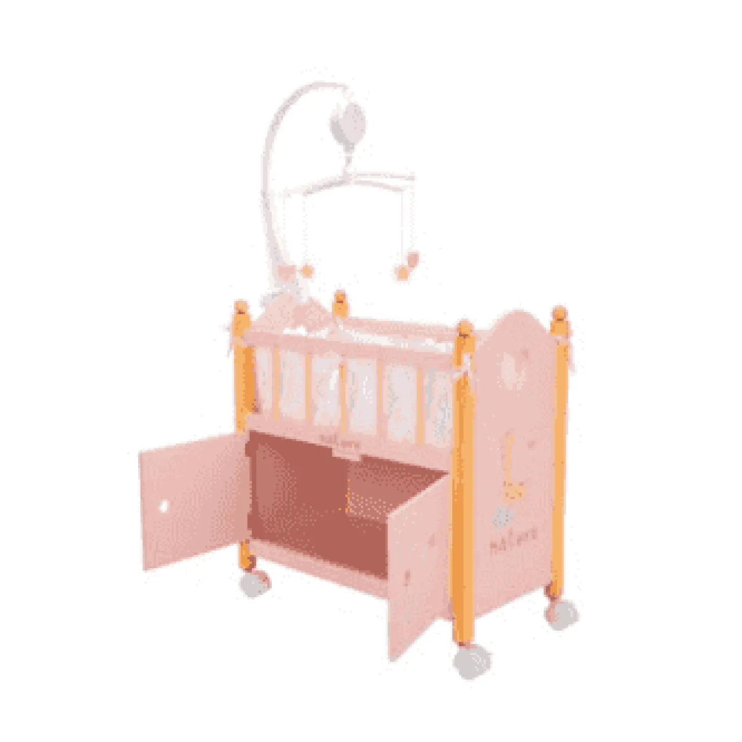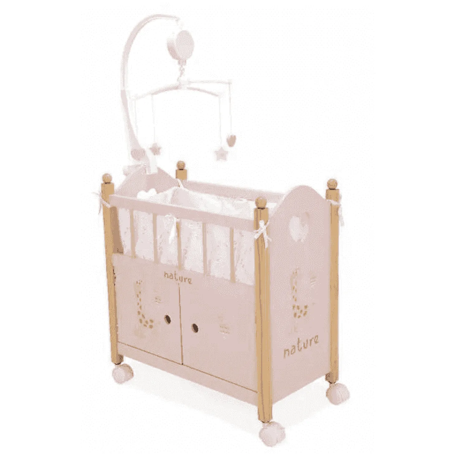 ¡Dos en uno y con mucho encanto! La Cuna/Armario Nature con Carrusel es el mueble ideal para dotar de estilo y organización el espacio de juego de las muñecas.