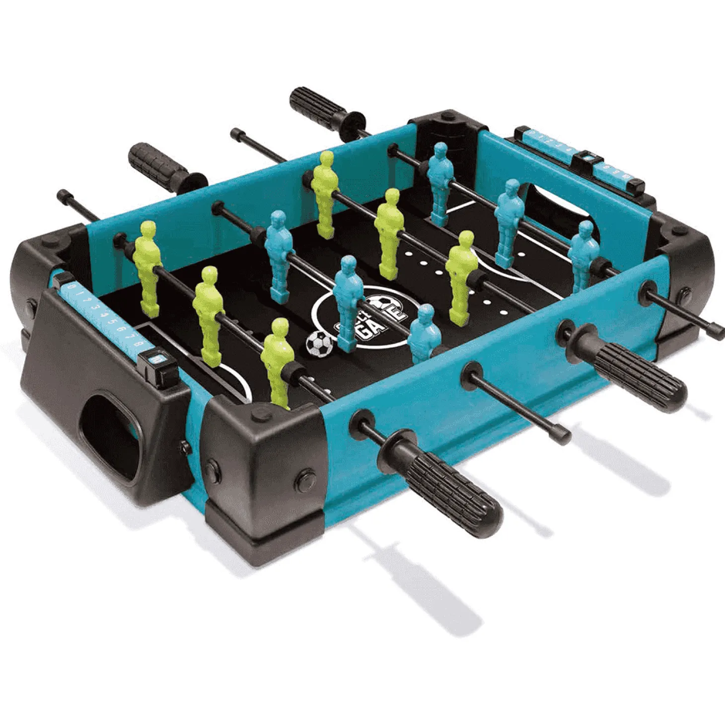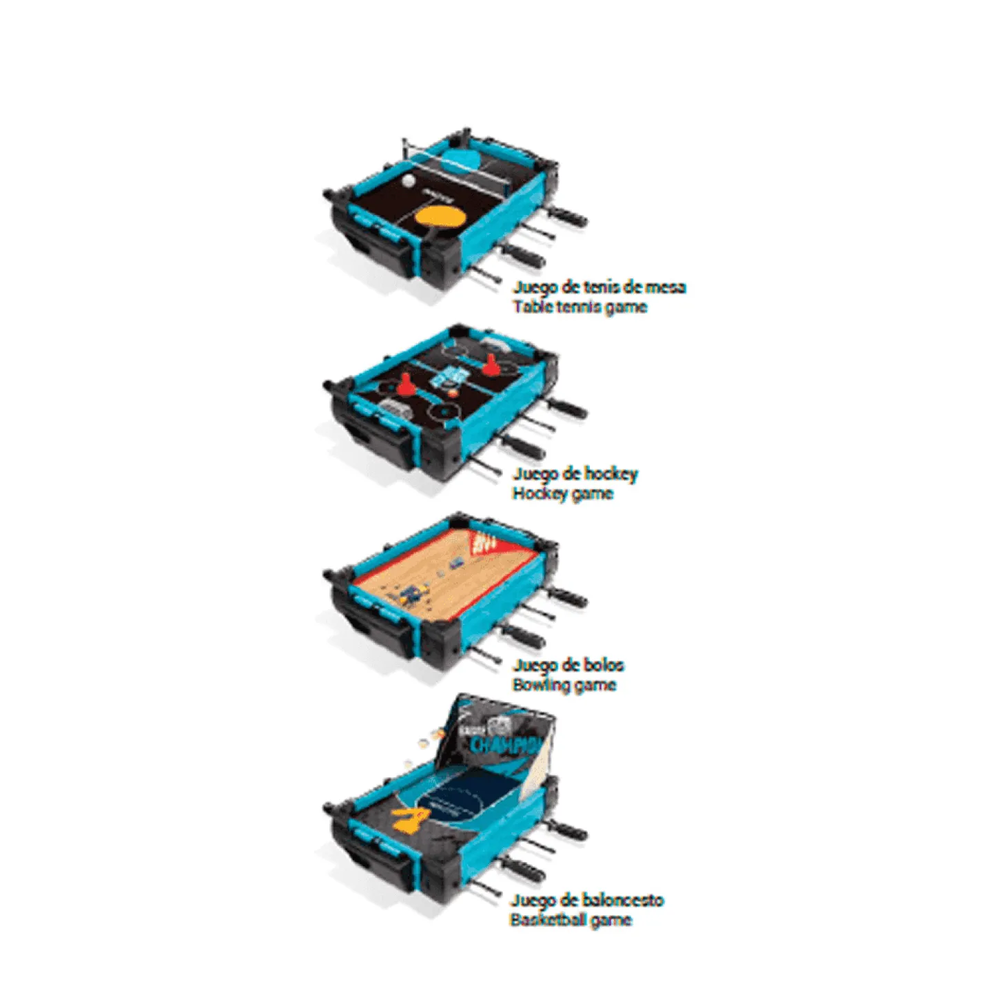 - 5 juegos en 1: futbolín, baloncesto, bolos, hockey y tenis de mesa.