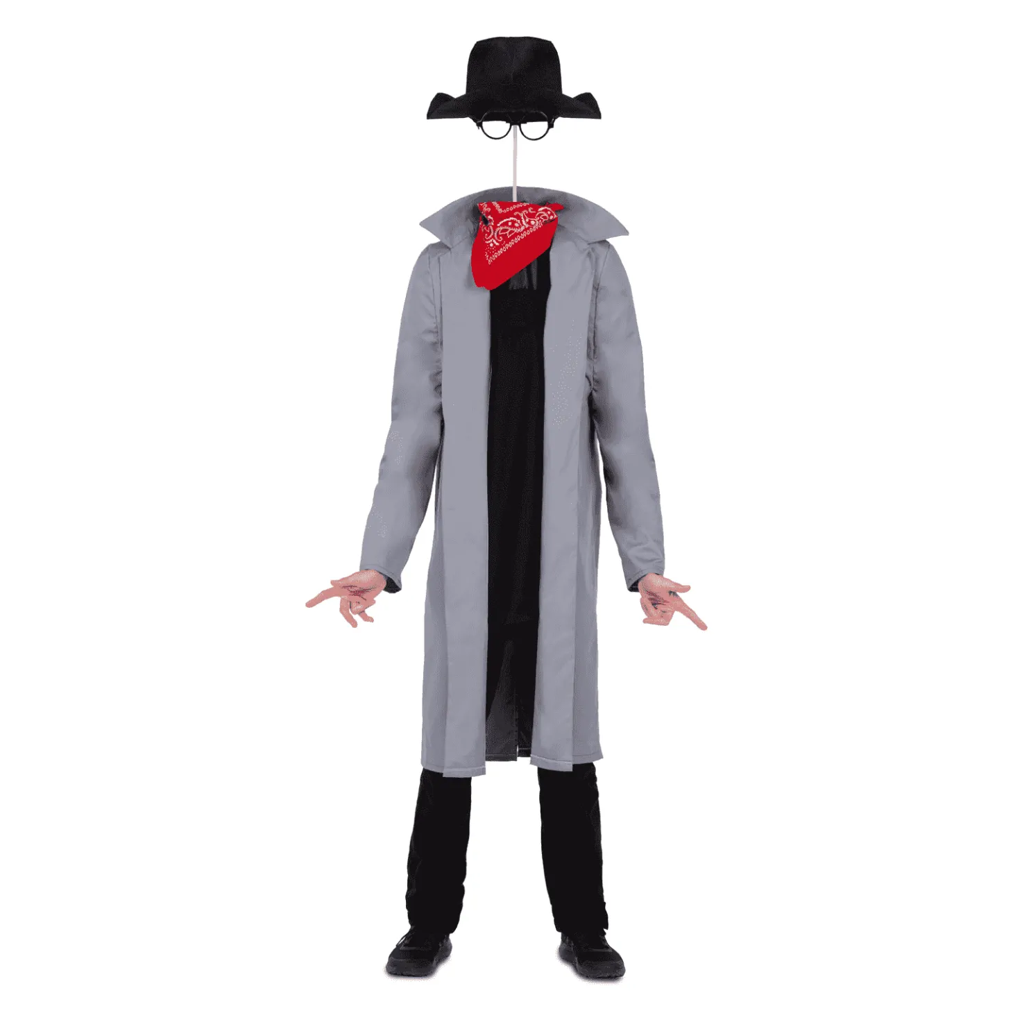 ¿Qué incluye? incluye sombrero con gafas y varillas, pañuelo, cuello, hombreras y gabardina con pechera. de a.