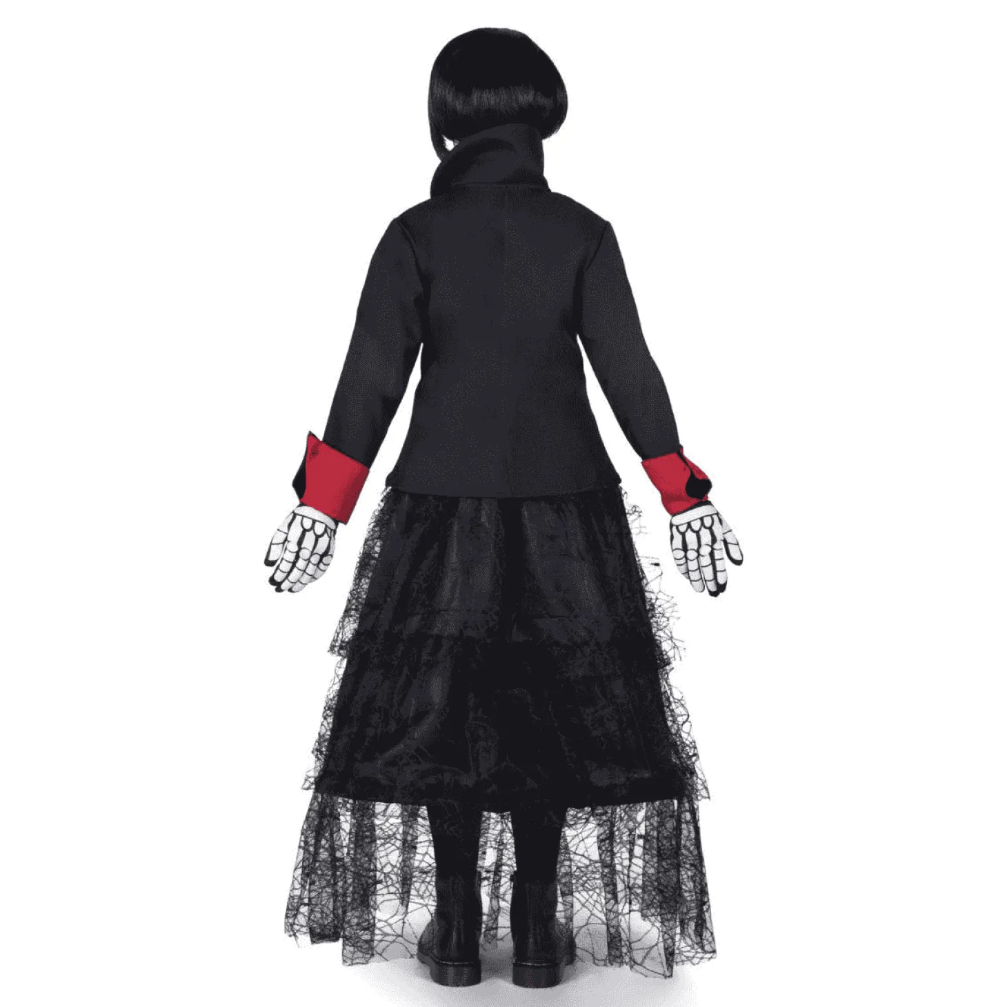 ¿Qué incluye? incluye vestido, chaqueta, guantes, chorrera esqueleto, gargantilla, peluca, 2 sets de tattoos, esponja, maquillaje blanco y maquillaje negro.