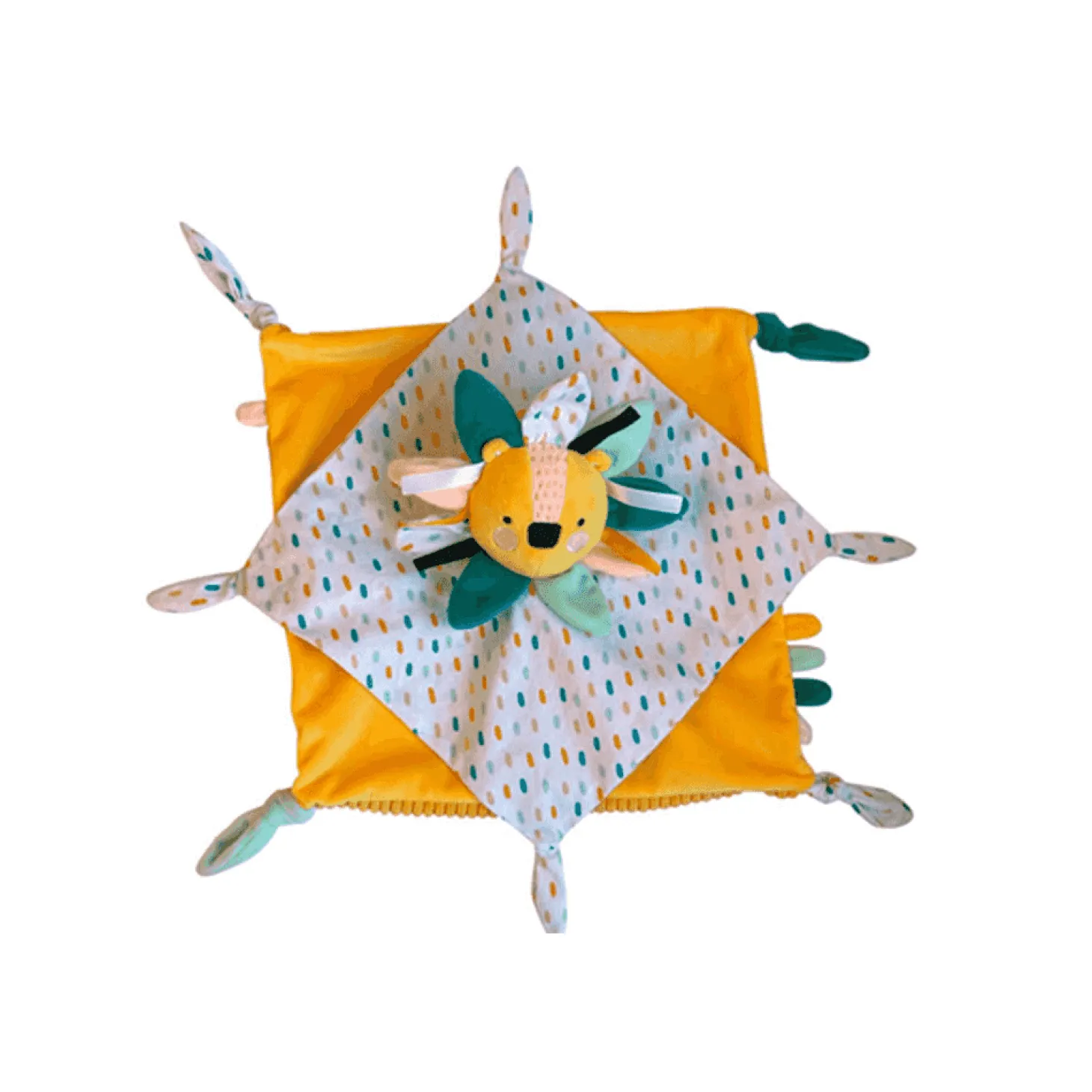 Este adorable dudú en forma de león combina tejidos suaves, colores cálidos y detalles bordados que aportan tranquilidad y estimulación al mismo tiempo. Diseñado con el máximo cuidado, está pensado para el uso diario del bebé, tanto en casa como en paseos o viajes.