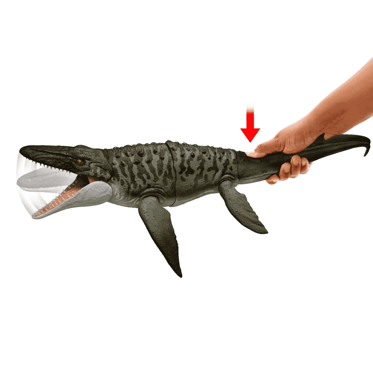 - Función de mordida interactiva: Presiona la cola y el Mosasaurio ¡atacará! La mandíbula se activa con el movimiento para simular un ataque realista.