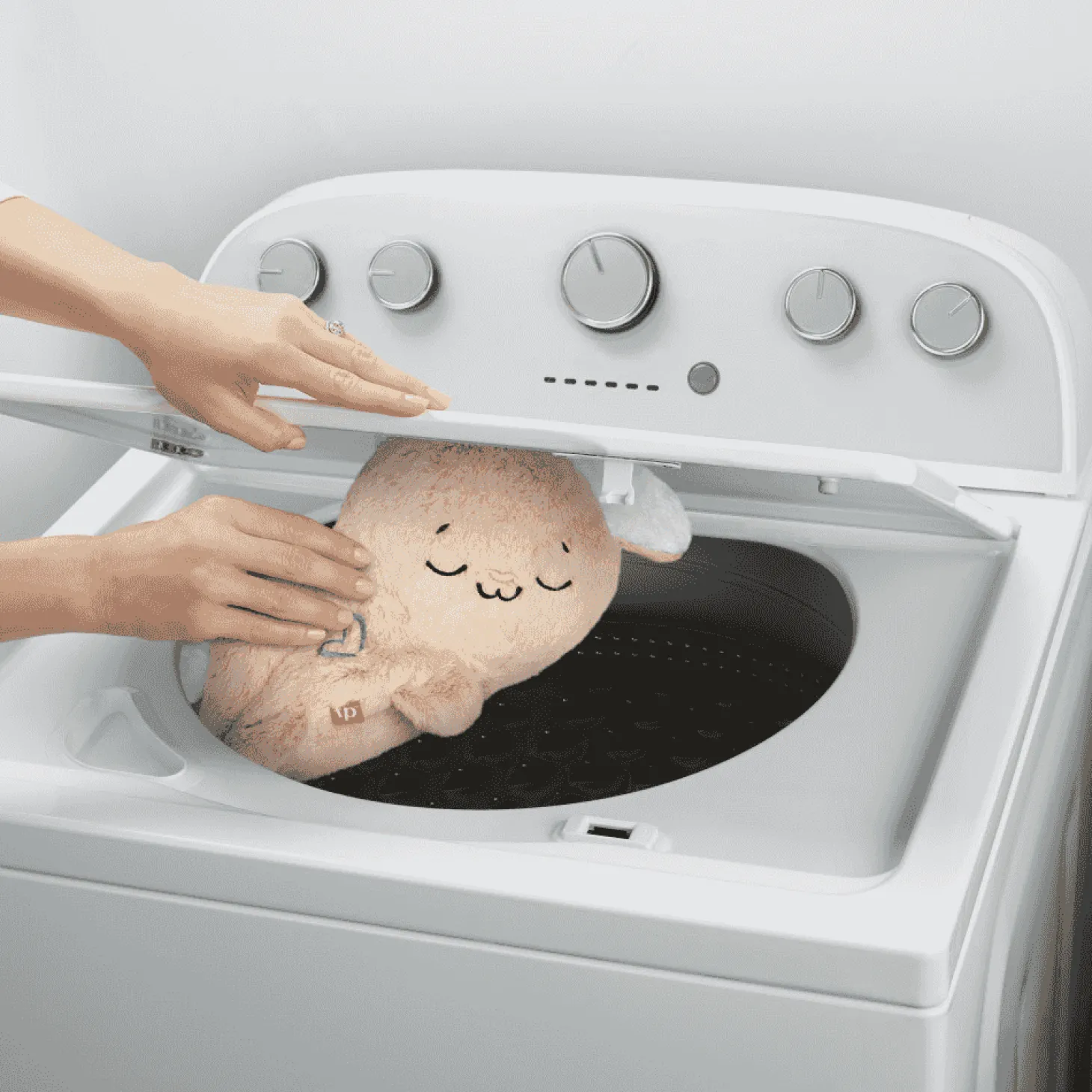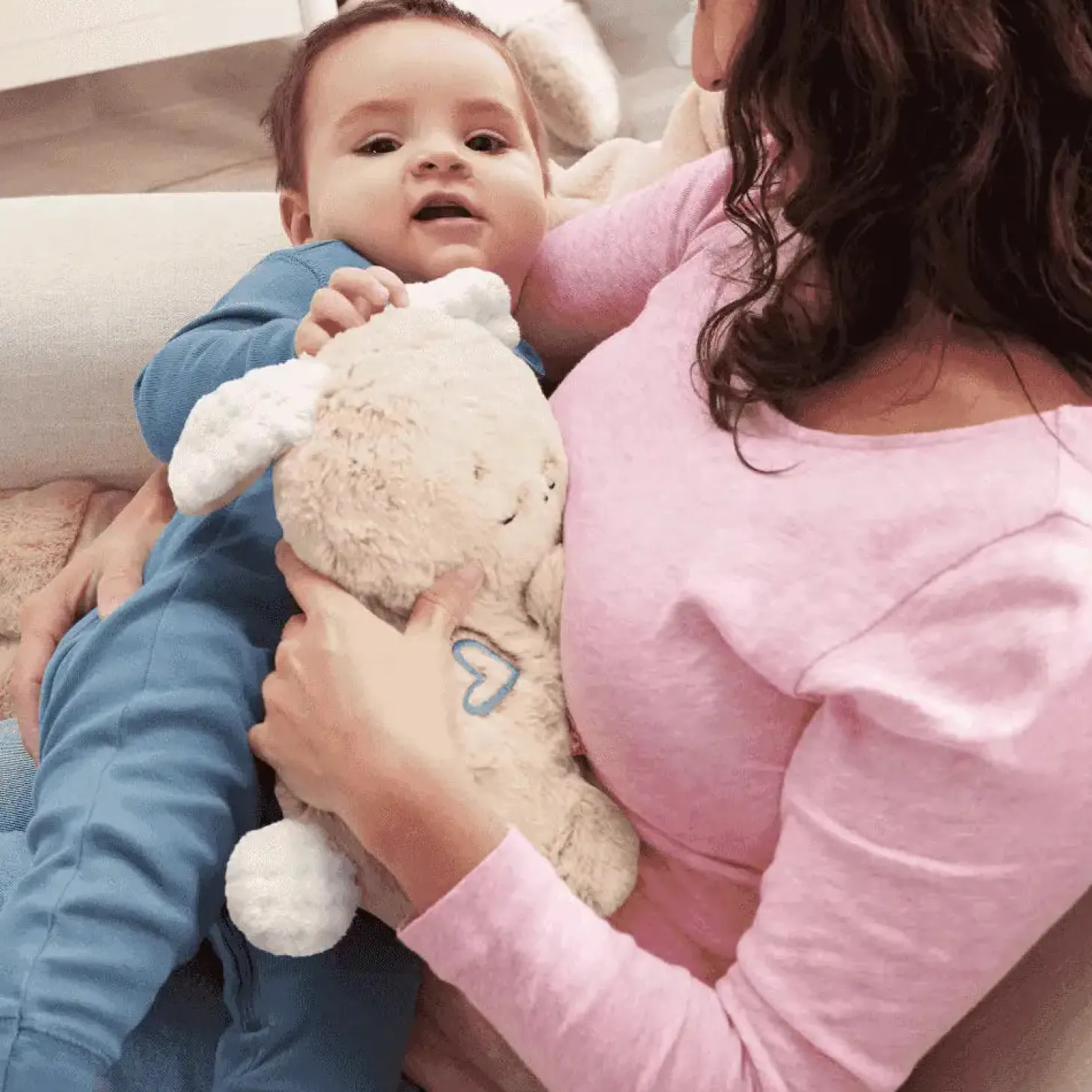 - Este suave conejito es un juguete sensorial que se puede lavar a máquina sin los componentes electrónicos.