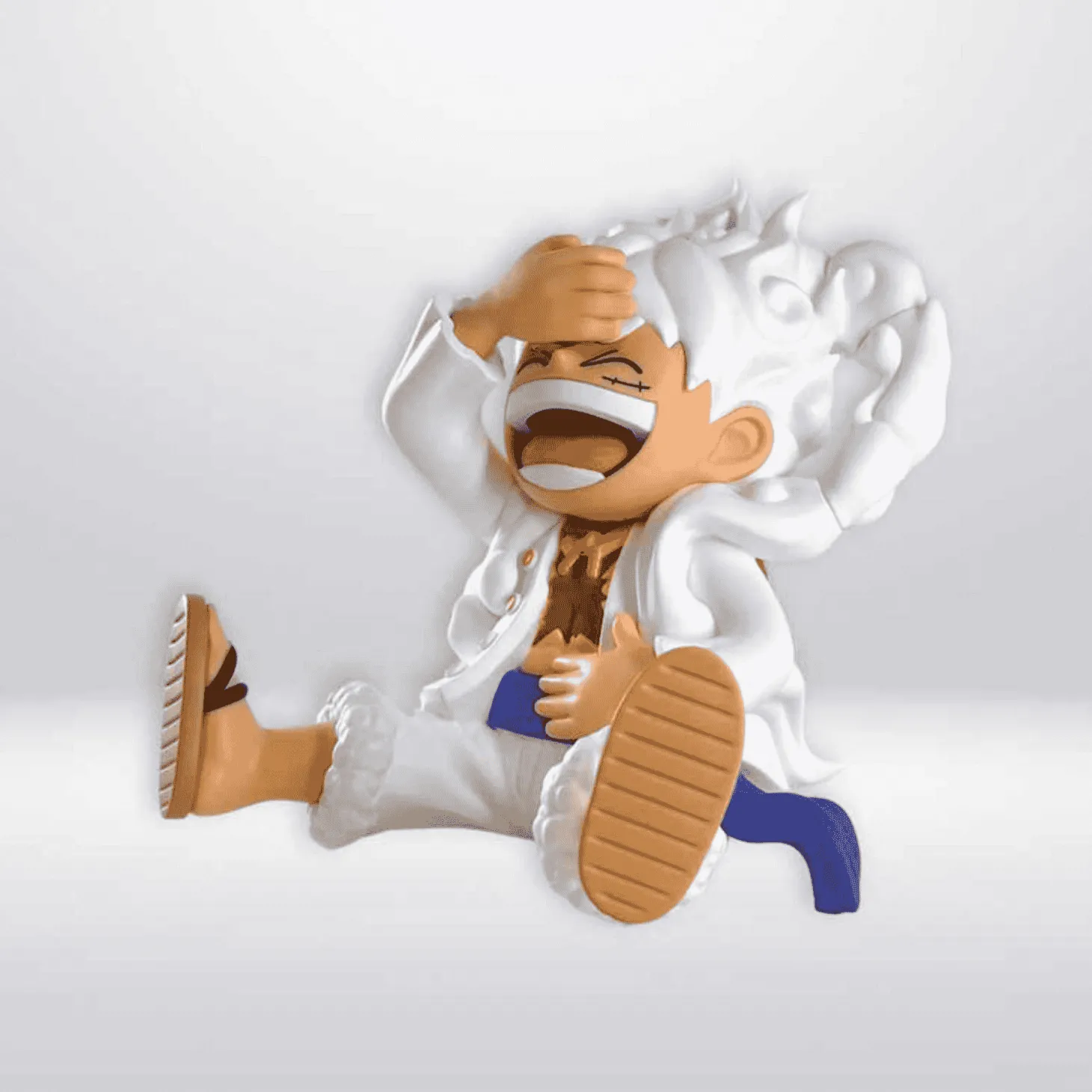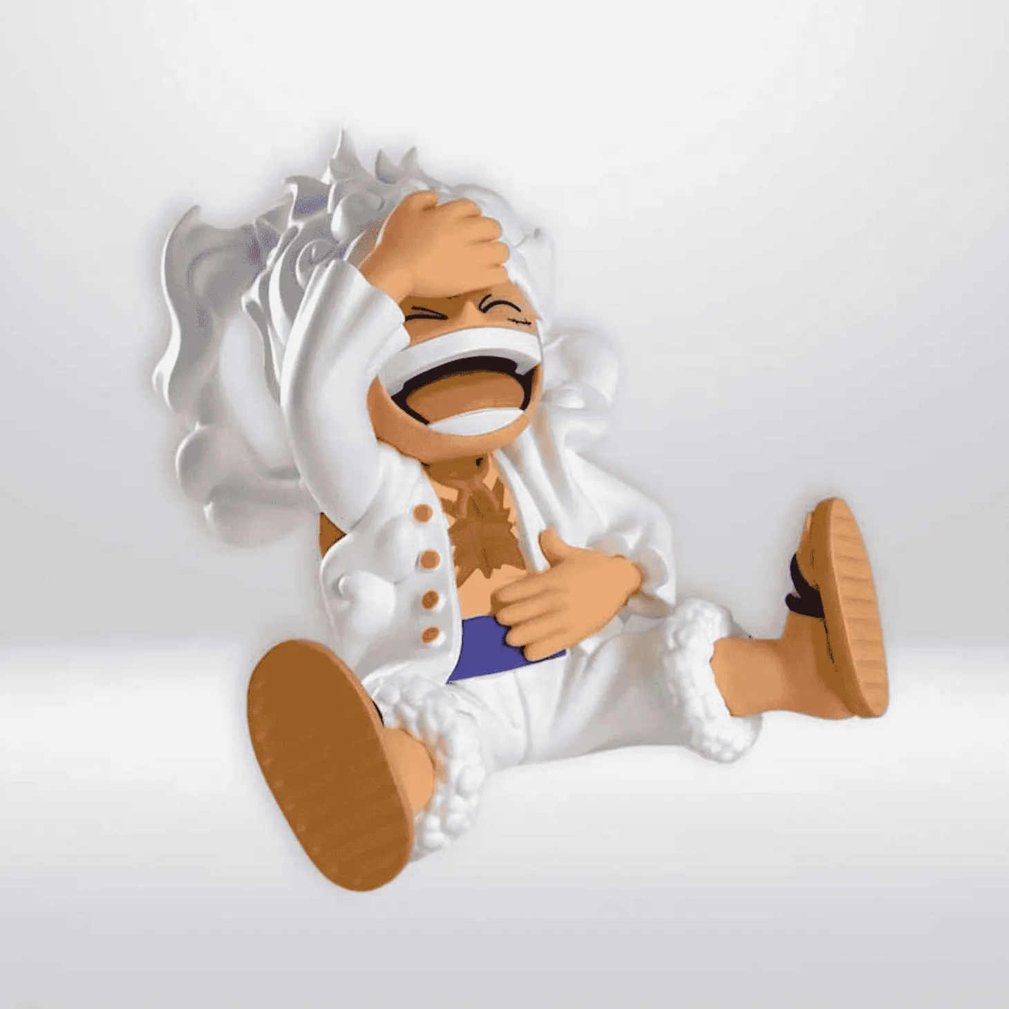 - Diseño detallado: Representa a Luffy en su transformación Gear 5, con su característico cabello blanco y expresión alegre.