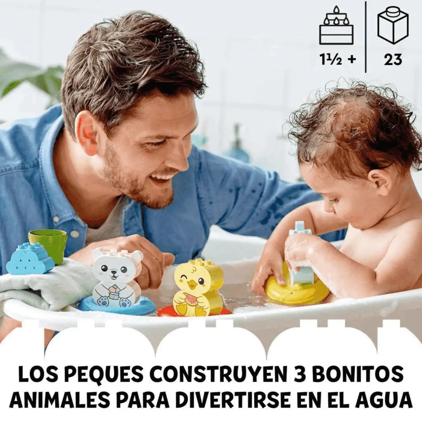 - Diversión para el desarrollo: Los bebés conectarán 2 ladrillos para construir cada animal y, después, los colocarán en los flotadores