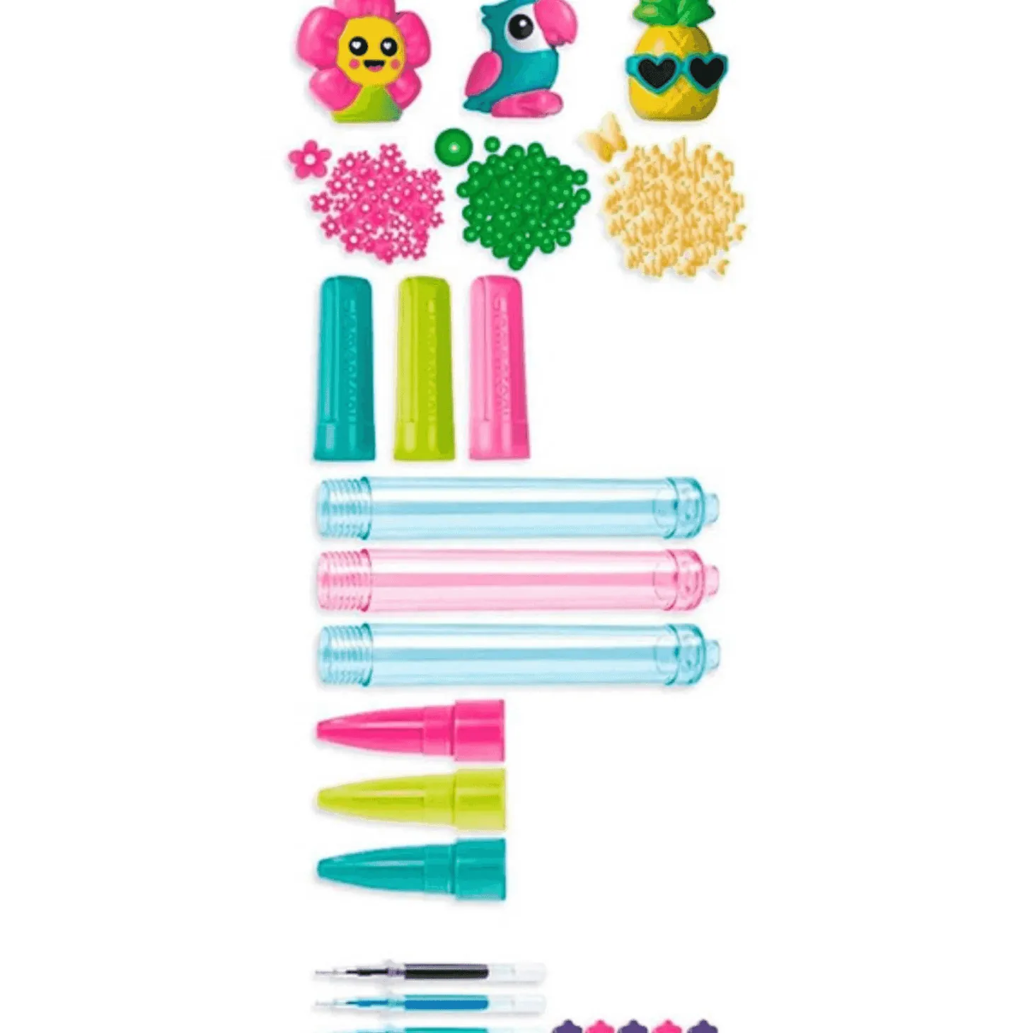 - Diseño Personalizable: Cada kit permite montar y personalizar 3 bolígrafos con decoraciones de estilo tropical. Los niños pueden elegir entre diferentes combinaciones de colores y adornos para crear bolígrafos verdaderamente únicos.