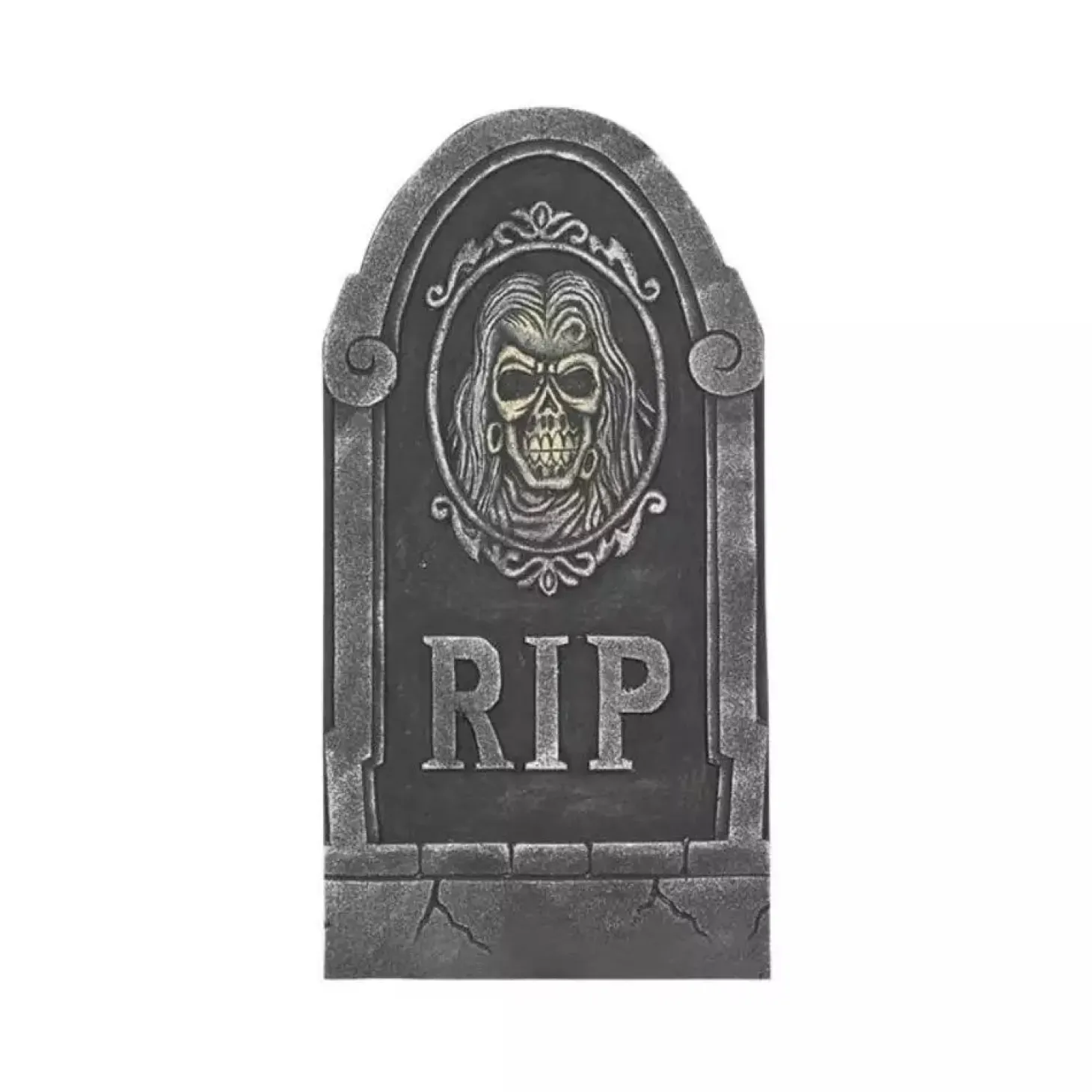- Diseño clásico de lápida con efectos de envejecido para mayor realismo.