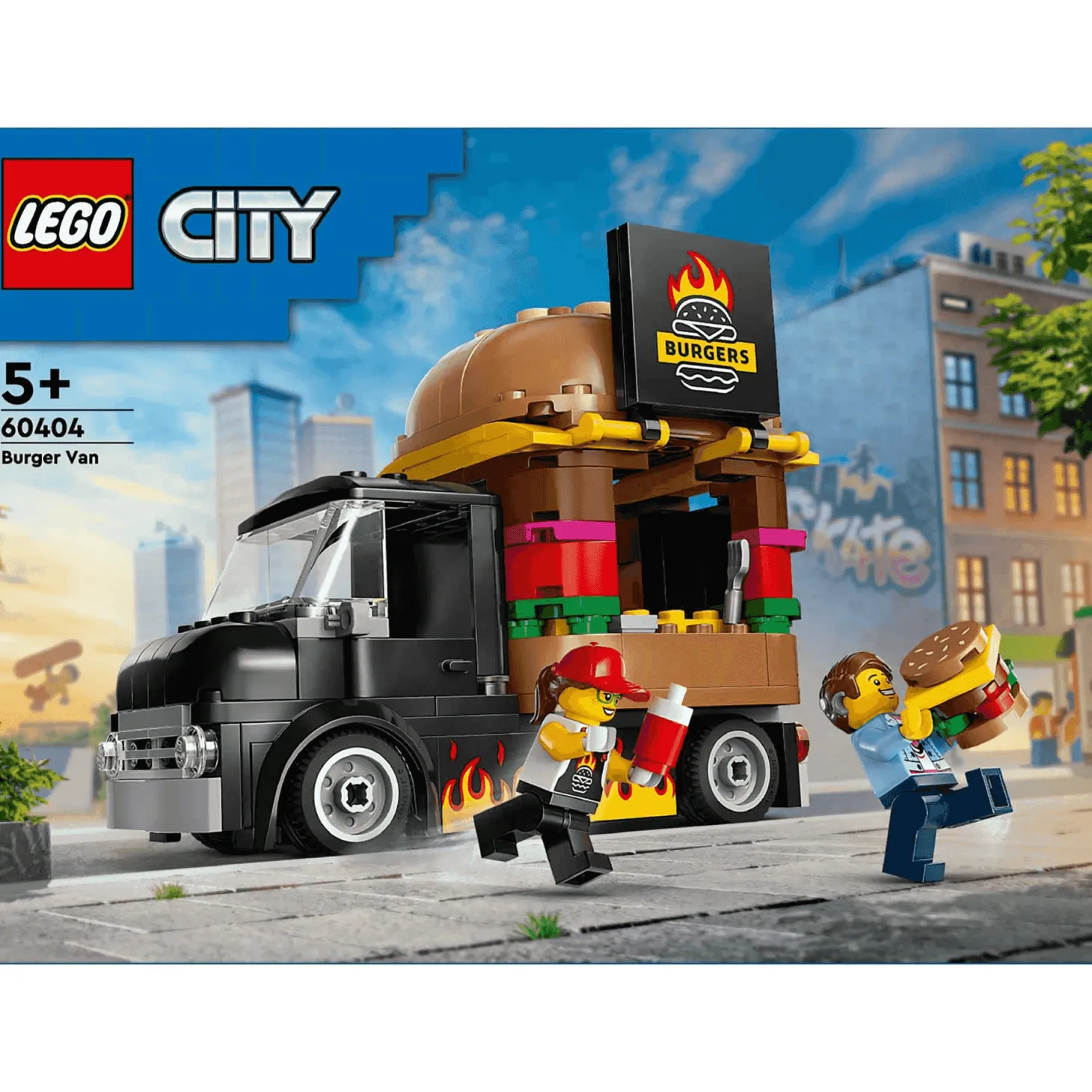 El juego de juguetes LEGO City Camión Hamburguesería (60404) para mayores de 5 años es todo un regalo para la imaginación de los niños. El puesto de comida rápida móvil, que tiene la forma de una hamburguesa gigante, puede desengancharse del camión y cuenta con una detallada zona de preparación, con condimentos y con una ventana de atención al cliente que se abre, decorada con el letrero del negocio: una hamburguesa a la parrilla. El set incluye también minifiguras de una vendedora y un cliente con un implante coclear. Las instrucciones de construcción del juguete LEGO City Camión Hamburguesería están disponibles en la caja y en la app LEGO Builder, donde tu peque podrá explorar y guardar sets, seguir sus progresos en el proceso de construcción, y acercar y girar sus modelos para verlos desde todos los ángulos mientras construye. Los sets de construcción LEGO City, con sus vehículos realistas y divertidos personajes, sitúan a los niños en el centro de imaginativos juegos cargados de acción.