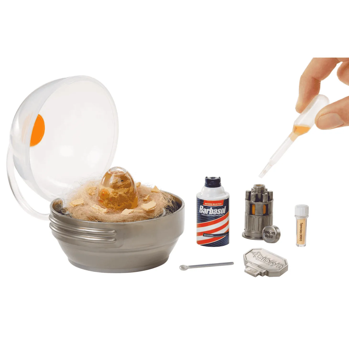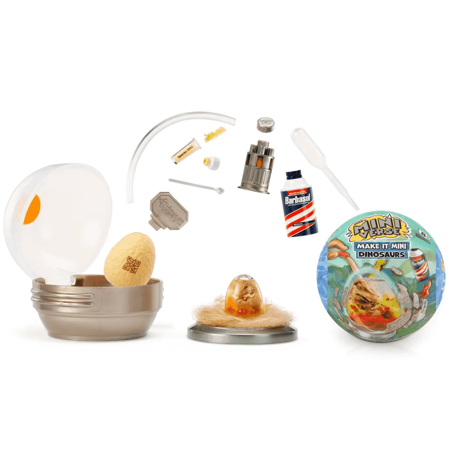 Dentro de cada cápsula misteriosa encontrarás un huevo o cilindro híbrido, cada uno con un dinosaurio sorpresa esperando a cobrar vida. Sigue las instrucciones para inyectar el polvo y el líquido de ADN, agita y… ¡tachán! Tu dinosaurio empezará a revelarse.