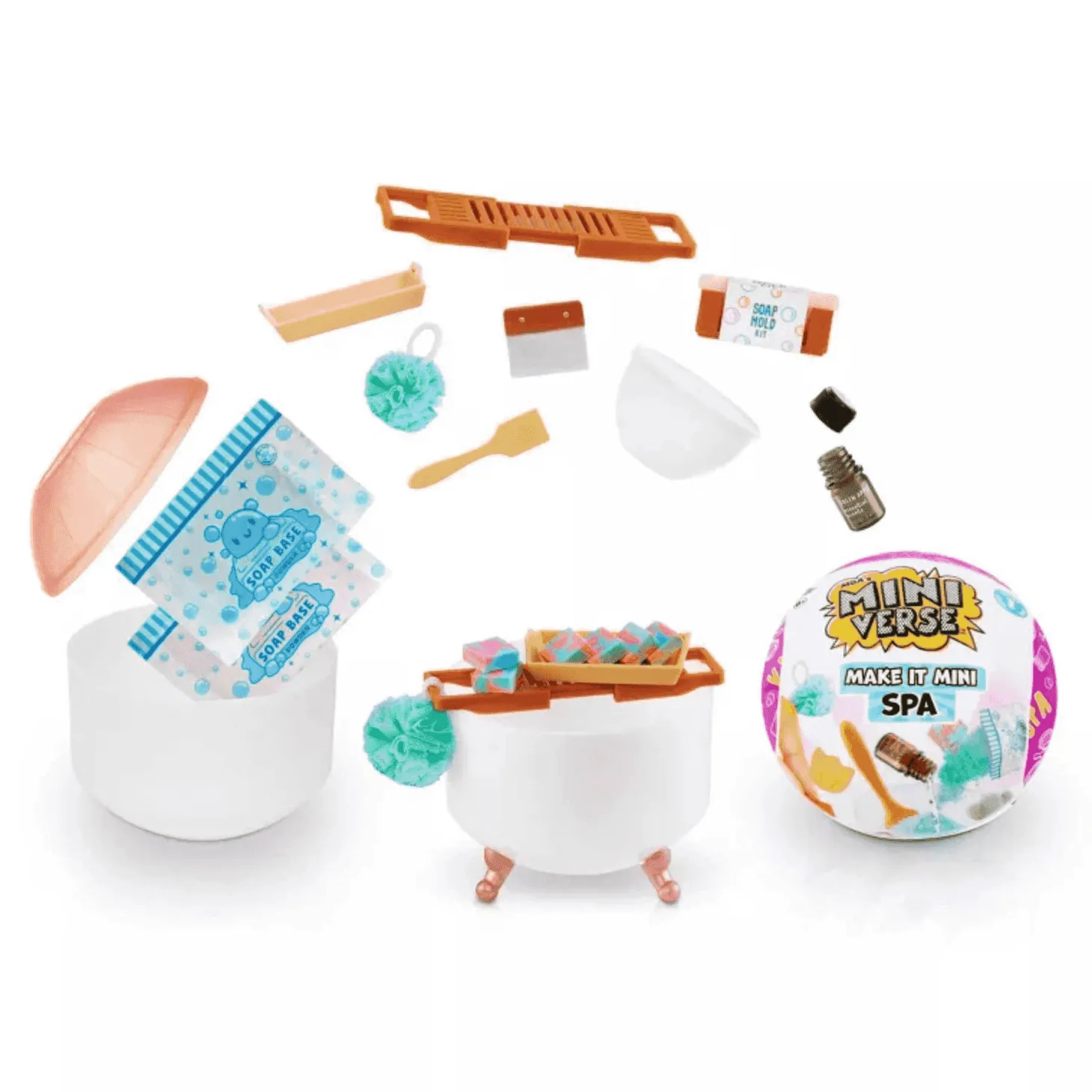 El Miniverse Make It Mini Spa Series 1 de MGA Entertainment es el set perfecto para crear y coleccionar miniaturas de productos de spa. Cada esfera contiene ingredientes y accesorios realistas para diseñar bombas de baño, jabones y exfoliantes, todos con funciones y aromas auténticos.