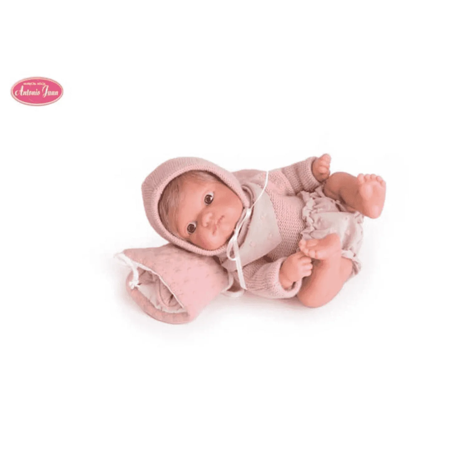 - Vestimenta Detallada: La muñeca viene vestida con un bonito jersey, culotte y babero a juego, complementados con un gorro que resalta su dulzura.